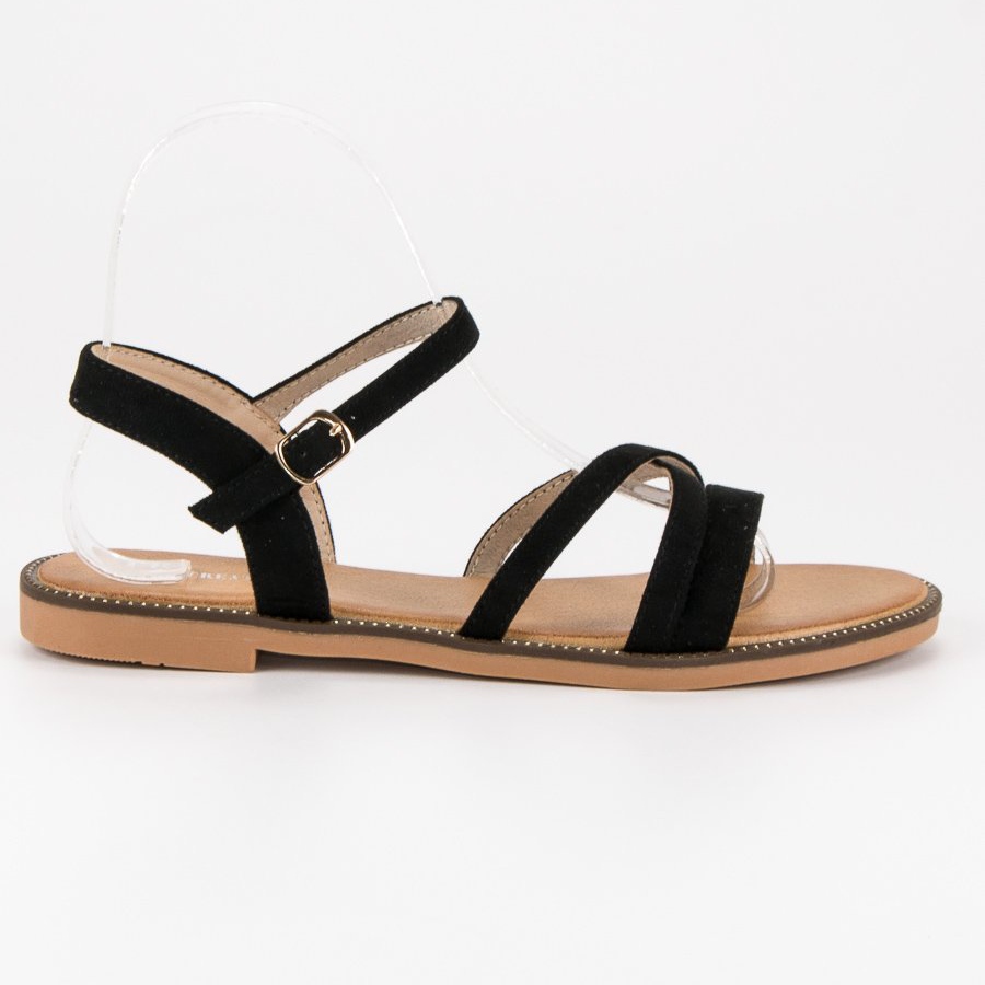 Vi presenterar svarta damsandaler från Ch. Skapande, som njuter av sin enkelhet och elegans. Dessa klassiska sandaler, gjorda av högkvalitativt ekologiskt läder med mockafinish, är ett perfekt val för sommardagar. En platt sula med en höjd på 1,5 cm säkerställer maximal komfort och stabilitet, vilket gör sandalerna perfekta för både vardagsbruk och speciella tillfällen.