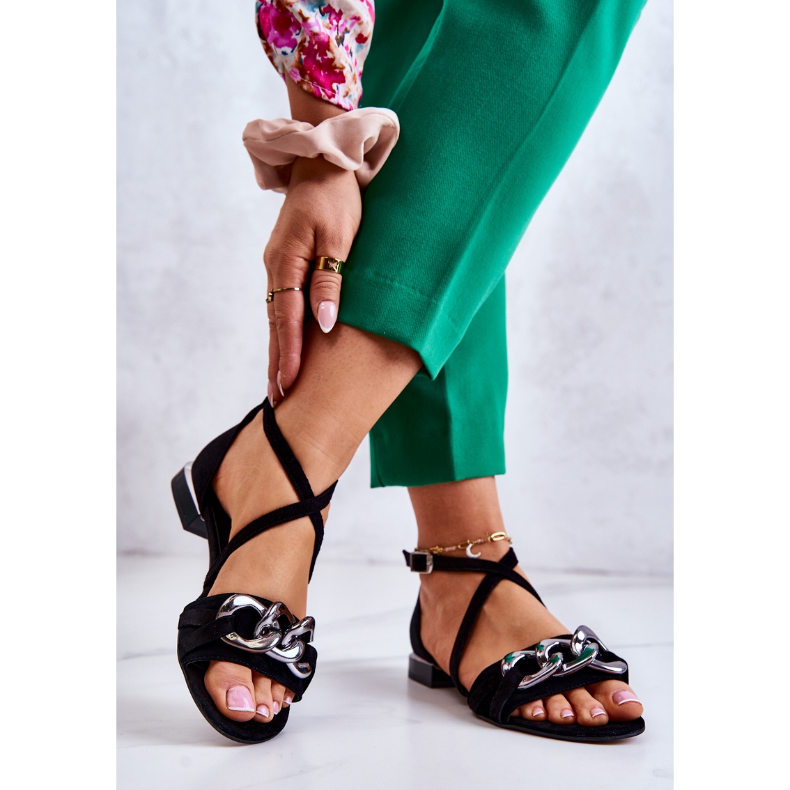 Detaljer: Damsandaler i mocka med kedja Laura Messi 2365 Svart