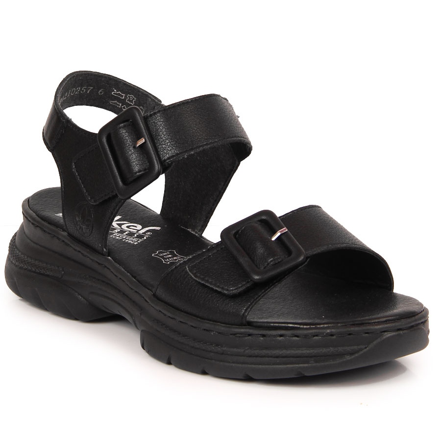 Detaljer: Damsandaler i skinn med kardborre svart Rieker 66680-00