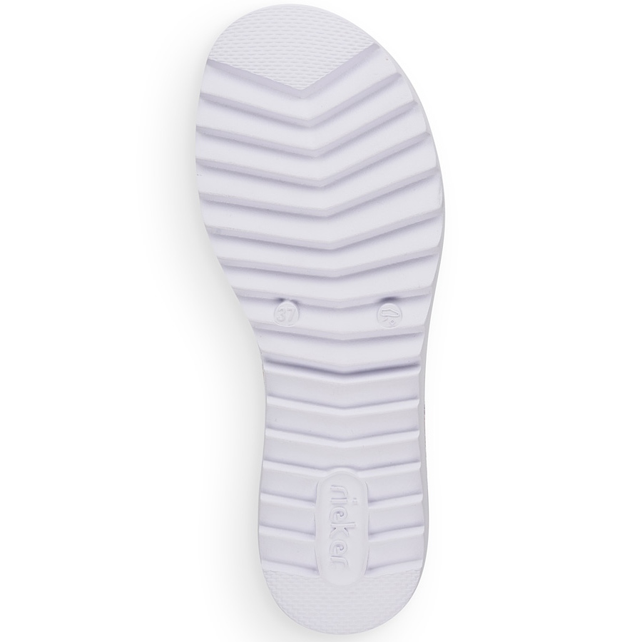 Sandalerna har en sultjocklek på 3 cm, och en 5 cm hög kil framhäver hela modellens elegans. Slip-on-fästet gör det extremt enkelt att ta på och av skorna. Riekers produkter har 24 månaders garanti och levereras i tillverkarens originalförpackning.