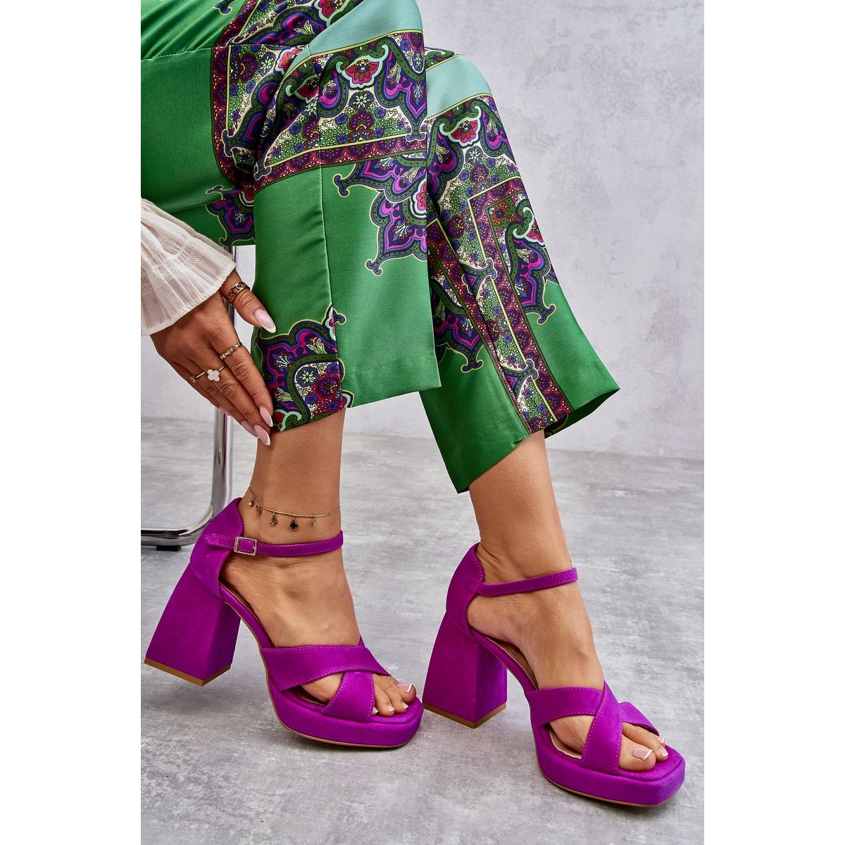 Lewski Shoes Lewski Shoes Damsandaler med hög klack i mocka Leski Skor 3221 Fuchsia rosa