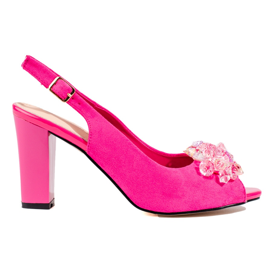 Detaljer: Damsandaler på stolpen med kristaller Shelovet rosa mocka
