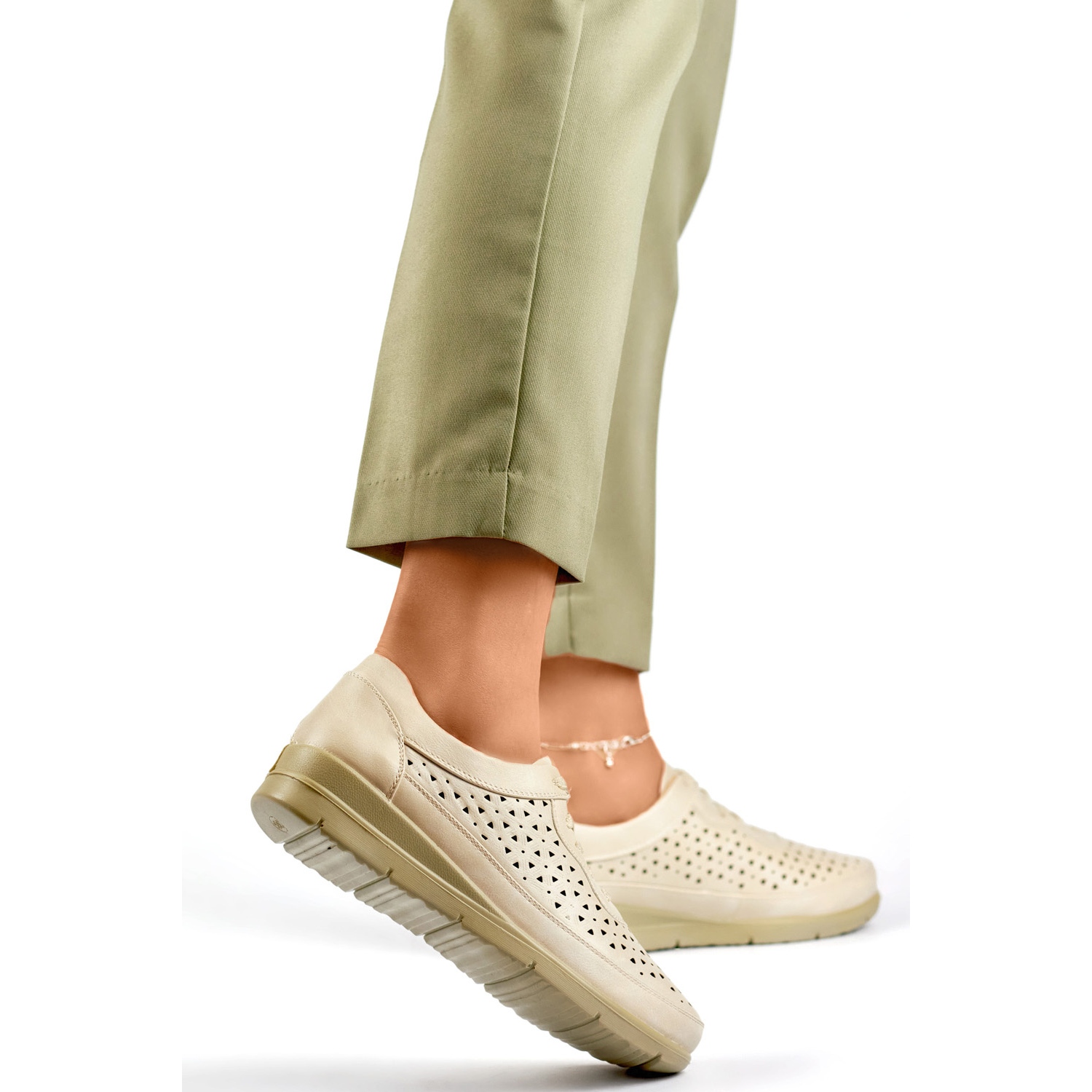 Kvinnors skor 8615-4be i en delikat beige skugga är det perfekta valet för moderna kvinnor som värderar komfort och elegans i vardagskor. Tillverkade av ekologiskt läder av hög kvalitet kännetecknas av ett subtilt utseende och uppmärksamhet på miljön. Deras klassiska design gör dem till ett universellt element av kläder, som är perfekt för både våren, sommaren och året runt.