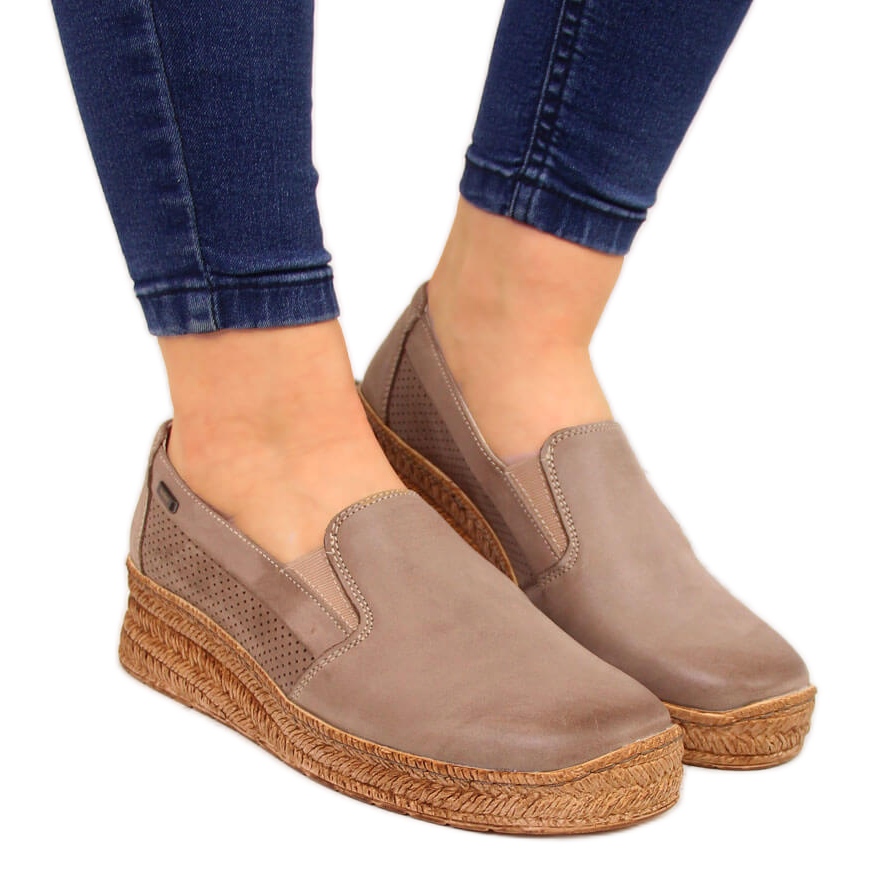 Upptäck elegans och komfort i beige kilskor i läder från det välkända varumärket Helios! 350-modellen är ett förslag skapat för kvinnor som värdesätter både stil och komfort. Dessa tidlösa skor kännetecknas av ett intressant, feminint snitt som ser bra ut på benet, vilket ger lätthet och elegans till alla stylingar.