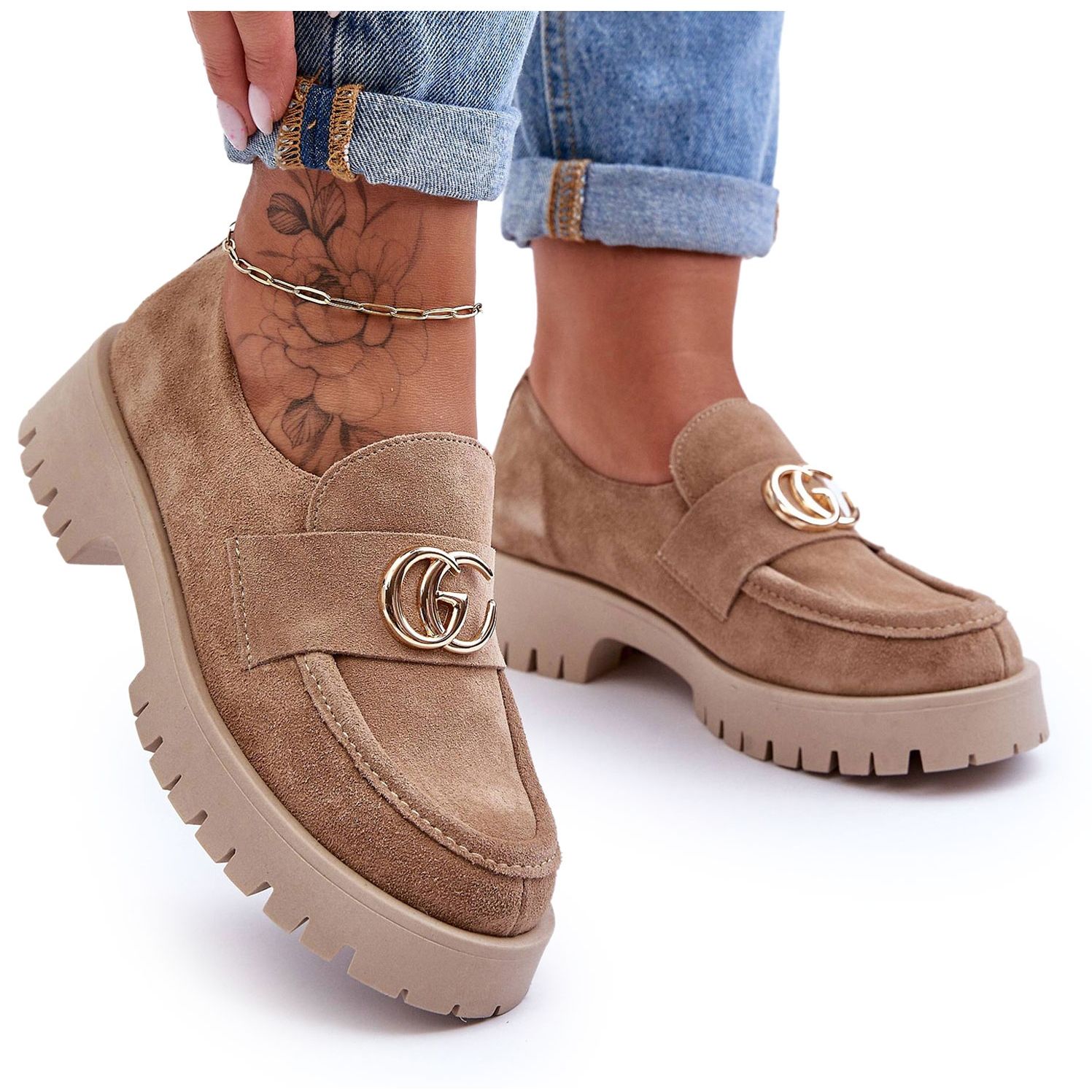Laura Messi Laura Messi Damskor i mocka med beige Rosefalls-dekoration
