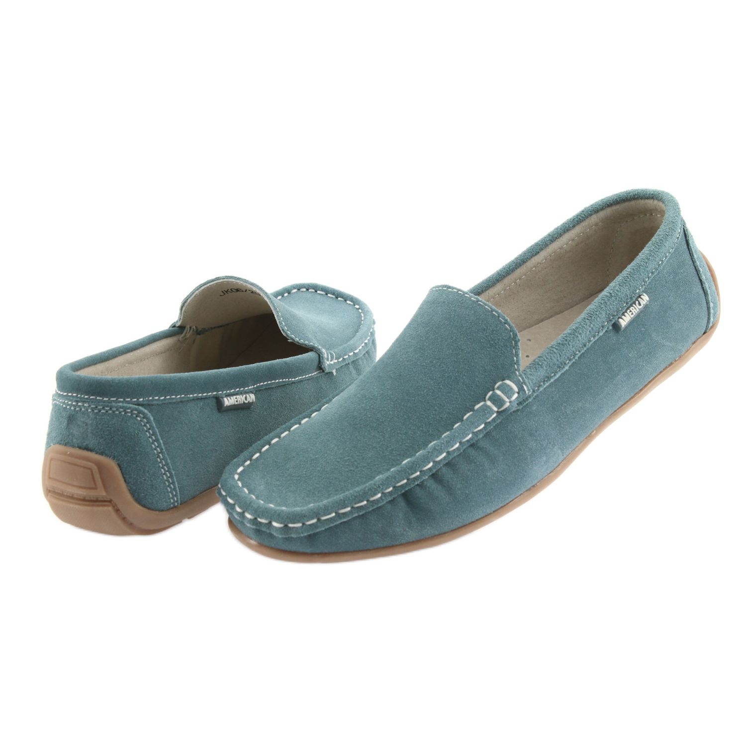 Denimblå färgen framhäver mockas naturliga struktur, och subtila sömmar och en etikett med American Club-logotypen ger dem ett elegant utseende. Dessa loafers matchar perfekt med en mängd olika stilar, vilket gör dem till ett mångsidigt komplement till varje kvinnas garderob.