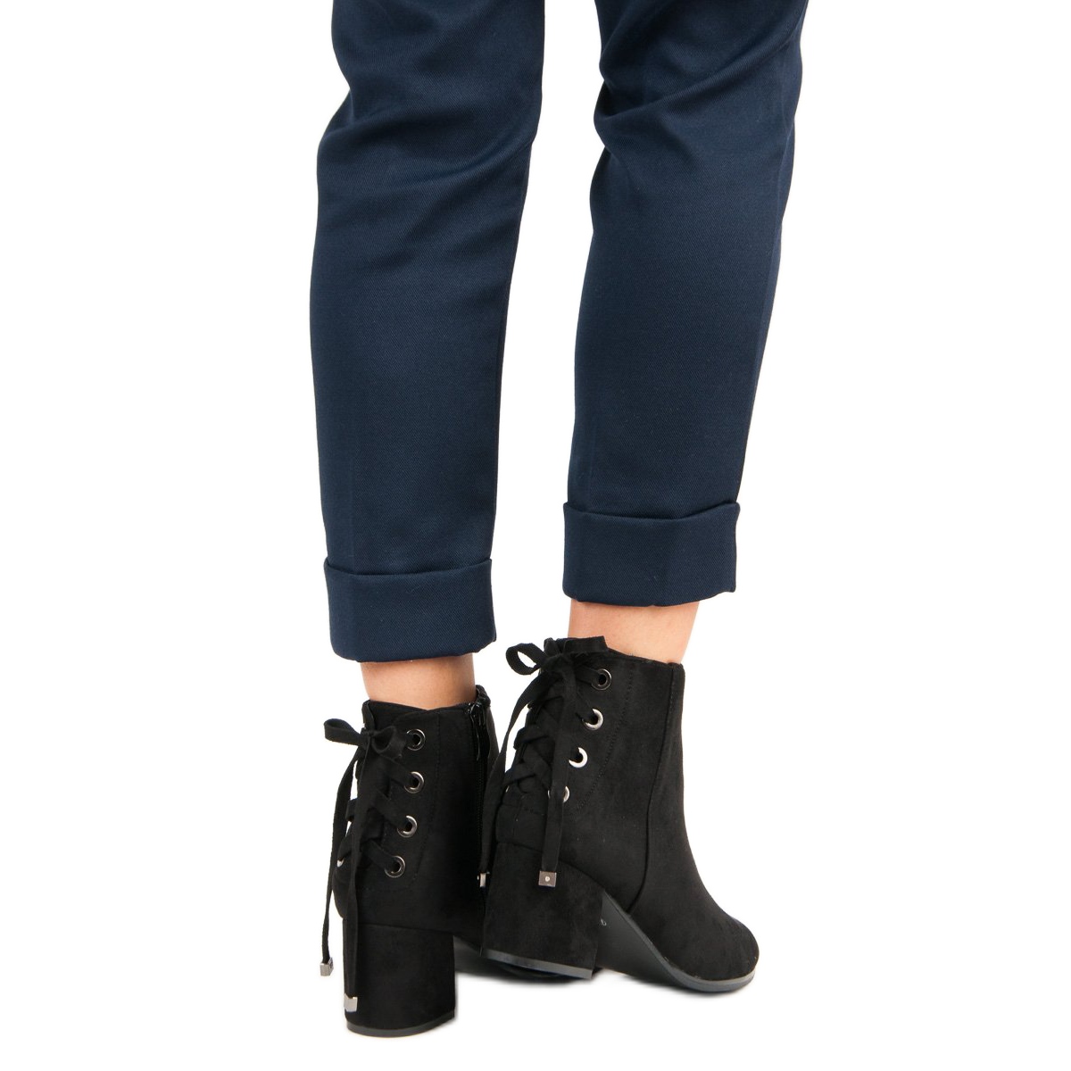 En intressant del av dessa stövlar är slipsen bak, vilket ger dem en unik karaktär. Dessutom garanterar pälsisolering inte bara ett elegant utseende, utan också komfort, även under kallare dagar. Tack vare en rund tå och en 6,5 cm hög blockklack ger skorna stabilitet och komfort när de bärs under långa perioder.