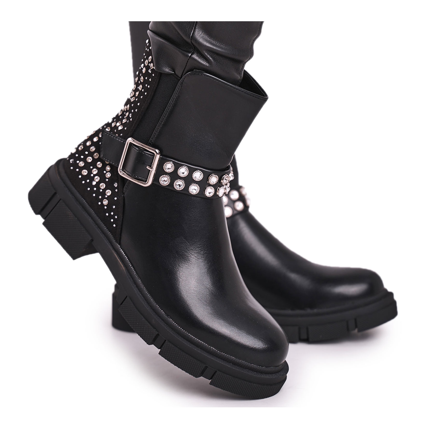 Vi presenterar HAN Giuliana ankelstövlar för kvinnor i en elegant svart färg, som kommer att bli en oskiljaktig del av din garderob. Dessa extremt snygga skor kommer att stjäla modeälskares hjärtan tack vare sin unika design, dekorerad med ett originalspänne och strass på baksidan av ovandelen.