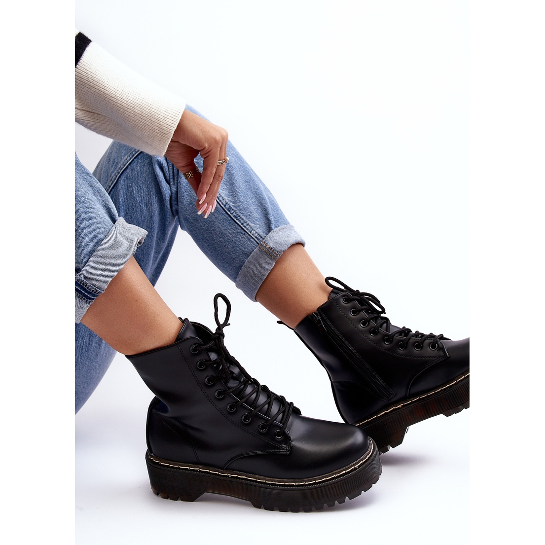 Upptäck klassikerna i en modern version tack vare Black Maddis Women's Trapper Lace-Up Ankel Boots! Dessa eleganta ankelboots, gjorda av ekologiskt läder, är det perfekta valet för kvinnor som vill kombinera stil med komfort. Ställda på en solid, platt klack och en tjock sula med slitbana garanterar de stabilitet och komfort under alla förhållanden.