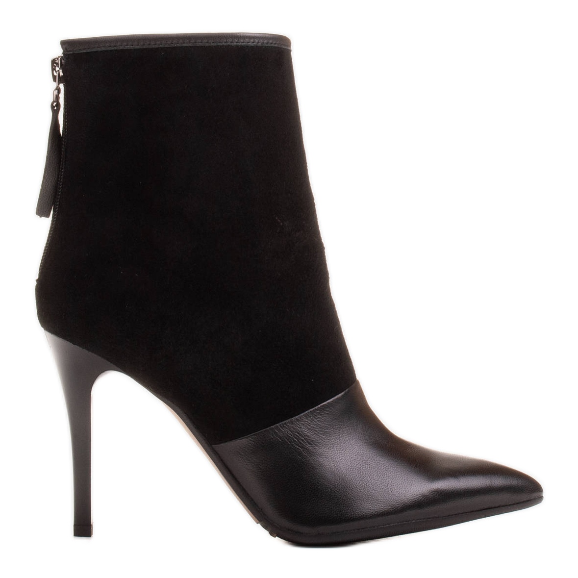 Vi presenterar en modell gjord av de bästa materialen: en kombination av naturligt narvläder och delikat mocka är en garanti för kvalitet och ett unikt utseende. Svart - en obestridd klassiker inom världsmodet - används här i den mest universella och eleganta versionen, vilket gör att dessa stövlar perfekt matchar många garderobselement - från affärskostymer till aftonklänningar och mer avslappnade set.