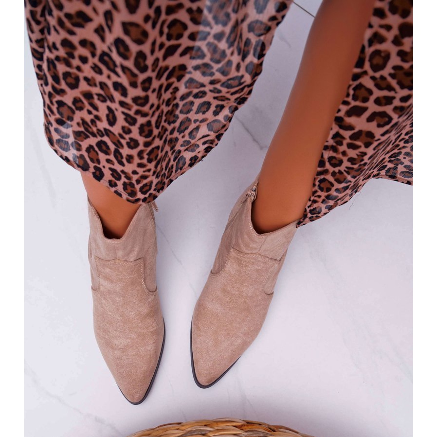Beige Umberco damskor med platt klack är det perfekta valet för den kommande säsongen. Dessa unika stövlar kombinerar moderiktig design med komfort att bära, vilket gör dem till ett perfekt komplement till höstens styling. Den beiga färgen på eko-lädret i mocka ger dem elegans, och den spetsiga tån ger en touch av klassiskitet.