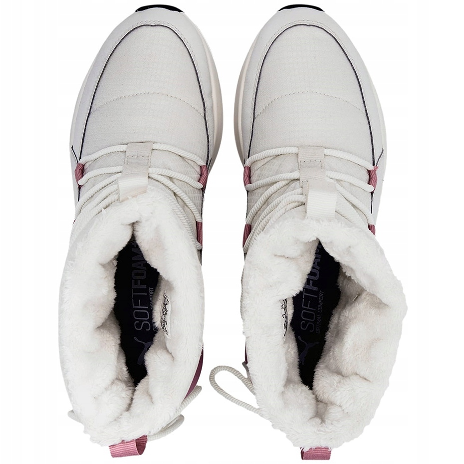 Stiliga och funktionella kvinnors vinterskor Puma Adela Winter Boot är ett förslag för kvinnor som letar efter värme och komfort i stadsutgåvan. En ljusgrå övre del av nylon och syntetiskt läder samt mjuk, konstgjord päls inuti säkerställer isolering från kylan, och den moderna designen garanterar komfort under dagen.