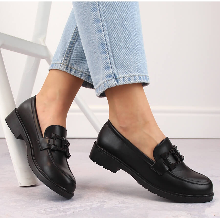 Dessa loafers är perfekta för både vardagliga, avslappnade stiliseringar och i mer eleganta kombinationer, tack vare vilka de är lämpliga för olika tillfällen - från vårvandringar till höstutflykter. En lycklig, klassisk svart loafers kommer definitivt att vara ett snyggt och praktiskt komplement till varje kvinnokontor.