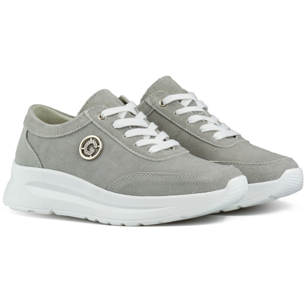 Detaljer: Damsneakers av naturläder i grått