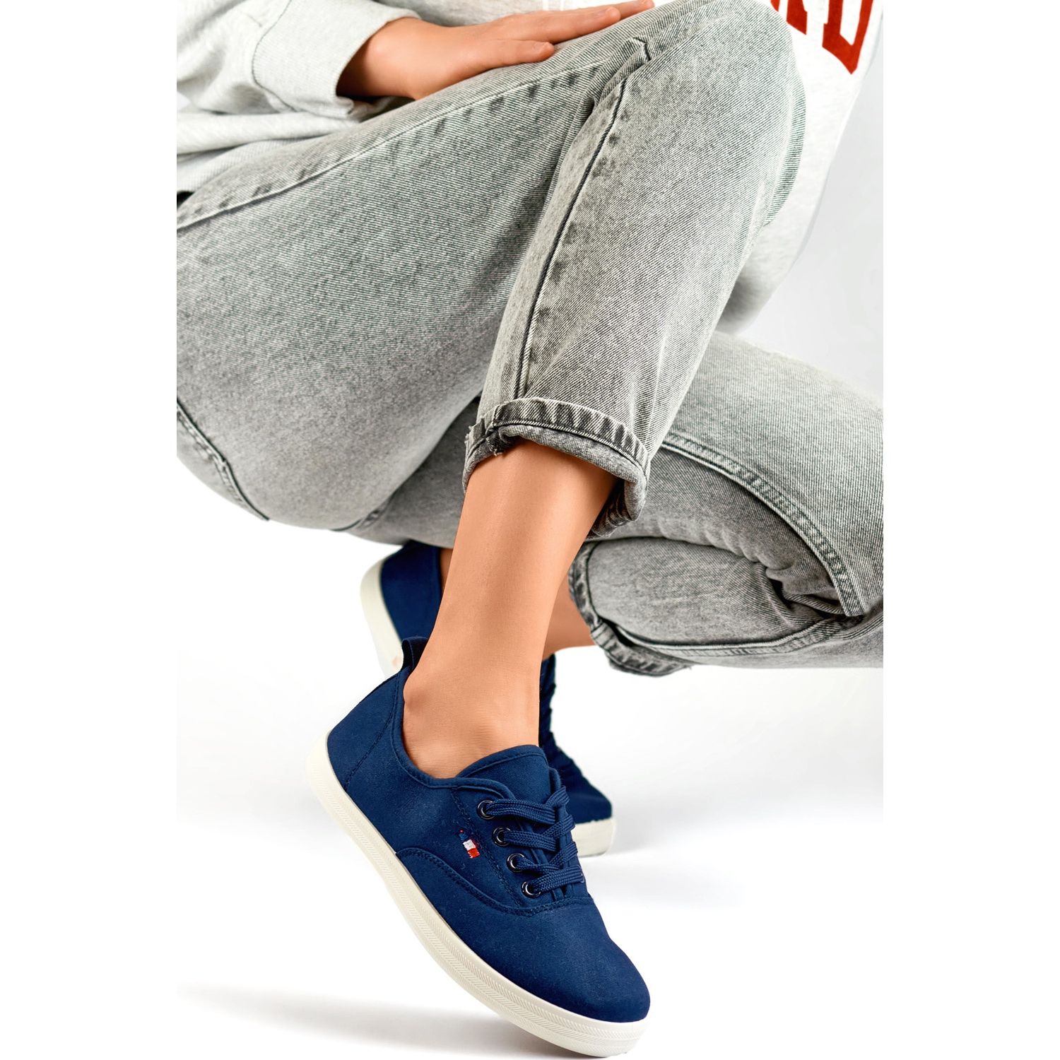 Tack vare 2-centimeter-sulan lägger sneakers till en subtil höjd, vilket gör dem extremt bekväma utan att förlora din stil. Den universella marinblå färgen gör dem enkla att kombinera med olika stiliseringar, både sport och avslappnad.