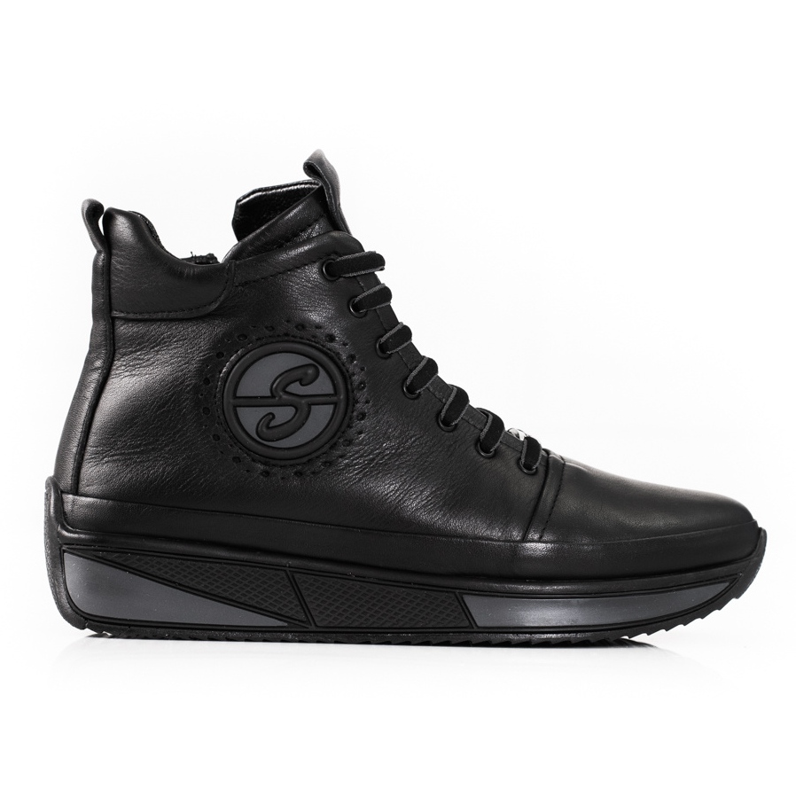 Eleganta plattformssneakers för kvinnor från det välkända märket Shelovet är det perfekta valet för kvinnor som vill kombinera komfort med moderiktig stil. Tillverkade av högsta kvalitet naturligt läder i en klassisk svart färg, dessa skor ser inte bara bra ut, utan ger också utmärkt hållbarhet och komfort.