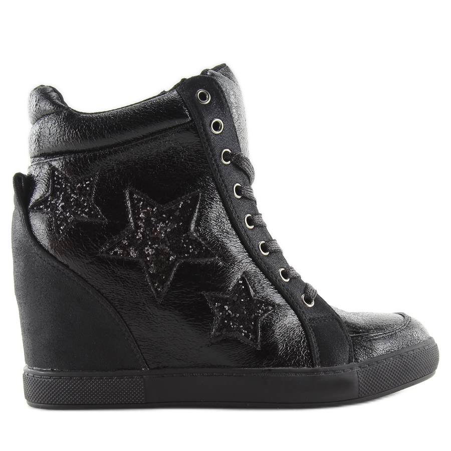 Svarta LL-72 svarta sneakers för kvinnor är det perfekta valet för kvinnor som värdesätter komfort och ett moderiktigt utseende. Dessa eleganta skor med en dold kil, 8 cm hög, ger inte bara några centimeter, utan säkerställer också komforten att bära tack vare noggrann profilering.