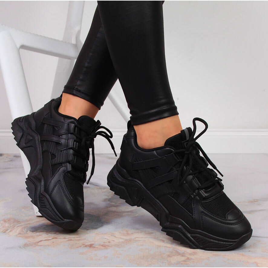 Upptäck den senaste trenden inom sportskor som du säkert kommer att gilla! Svarta NEWS sportskor för kvinnor med tjock sula är det perfekta valet för varje aktiv kvinna som värdesätter stil och komfort. Dessa sneakers, monterade på en 2,5 cm tjock sula, ger inte bara utmärkt dämpning, utan lägger också till några centimeters höjd, vilket gör att siluetten ser smalare ut.