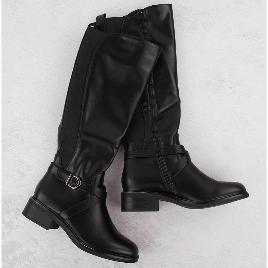Den svarta färgen på kosacken och det klassiska snittet gör att denna modell matchar många stilar - från vardag till de mer eleganta. En platt häl med en höjd av 4 cm säkerställer stabilitet, och den runda näsan tillför all subtilitet. Stövlar har en dragkedja, vilket gör det lättare att ta på sig och ta av.