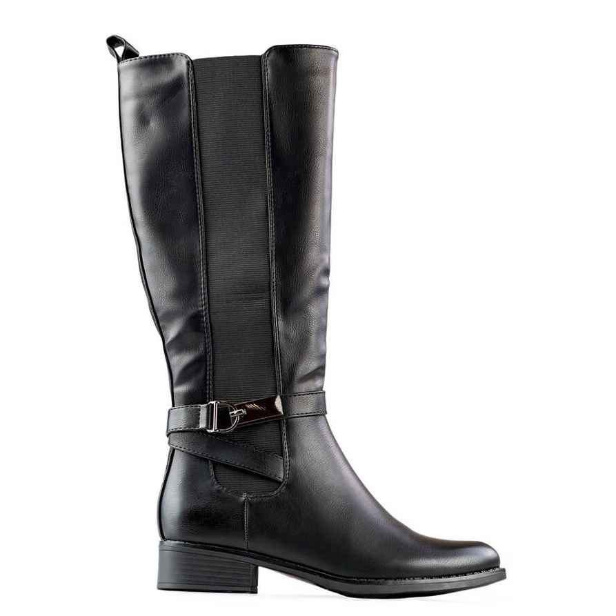 Detaljer: Damstövlar med elastiskt gummi, svart JK-167B