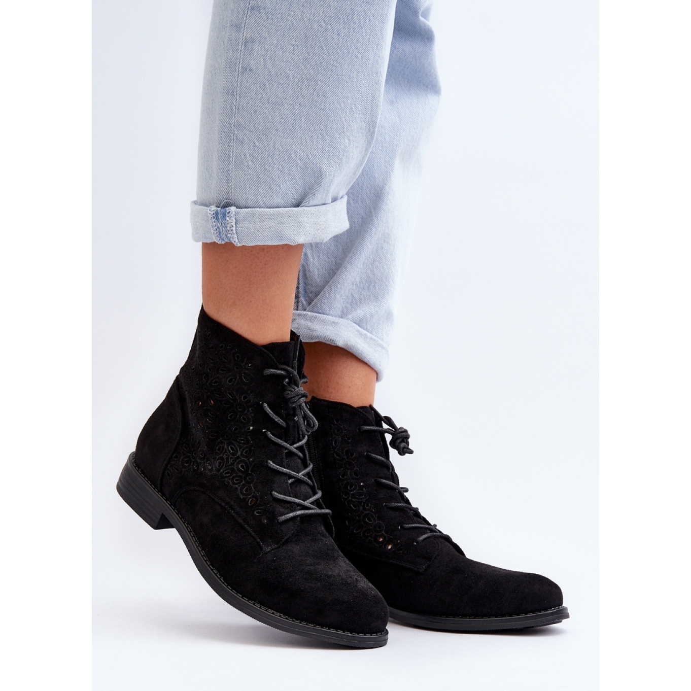 Detaljer: Damstövlar med genombruten ovandel S.Barski Black svart
