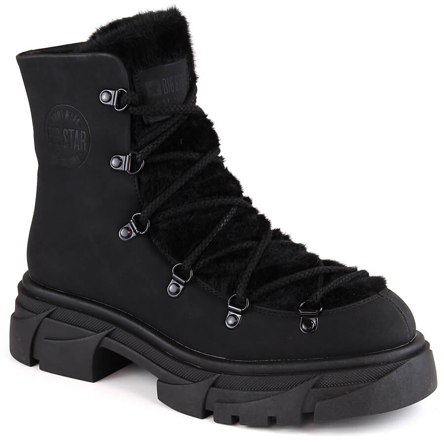 Kvinnors Big Star MM274572 Kvinnestövlar - Fashionabla, varma och bekväma lösningar för svalare dagar. Det svarta, matt ekologiska läder övre kombinerat med mjuk päls inuti skapar en snygg och praktisk modell som är idealisk för höstens säsongsäsong.
