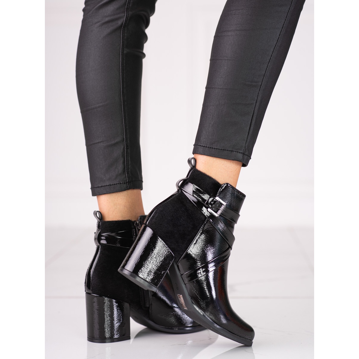 Upptäck elegans och komfort i en av de senaste modellerna av högklackade ankelstövlar för kvinnor från märket Shelovet. Dessa svarta stövlar gläds inte bara med sitt fashionabla utseende, utan också med noggrant utförande. Perfekt för höst/vintersäsongen, de passar perfekt in i en avslappnad och elegant stil, vilket gör dem till ett mångsidigt tillskott till alla garderober.