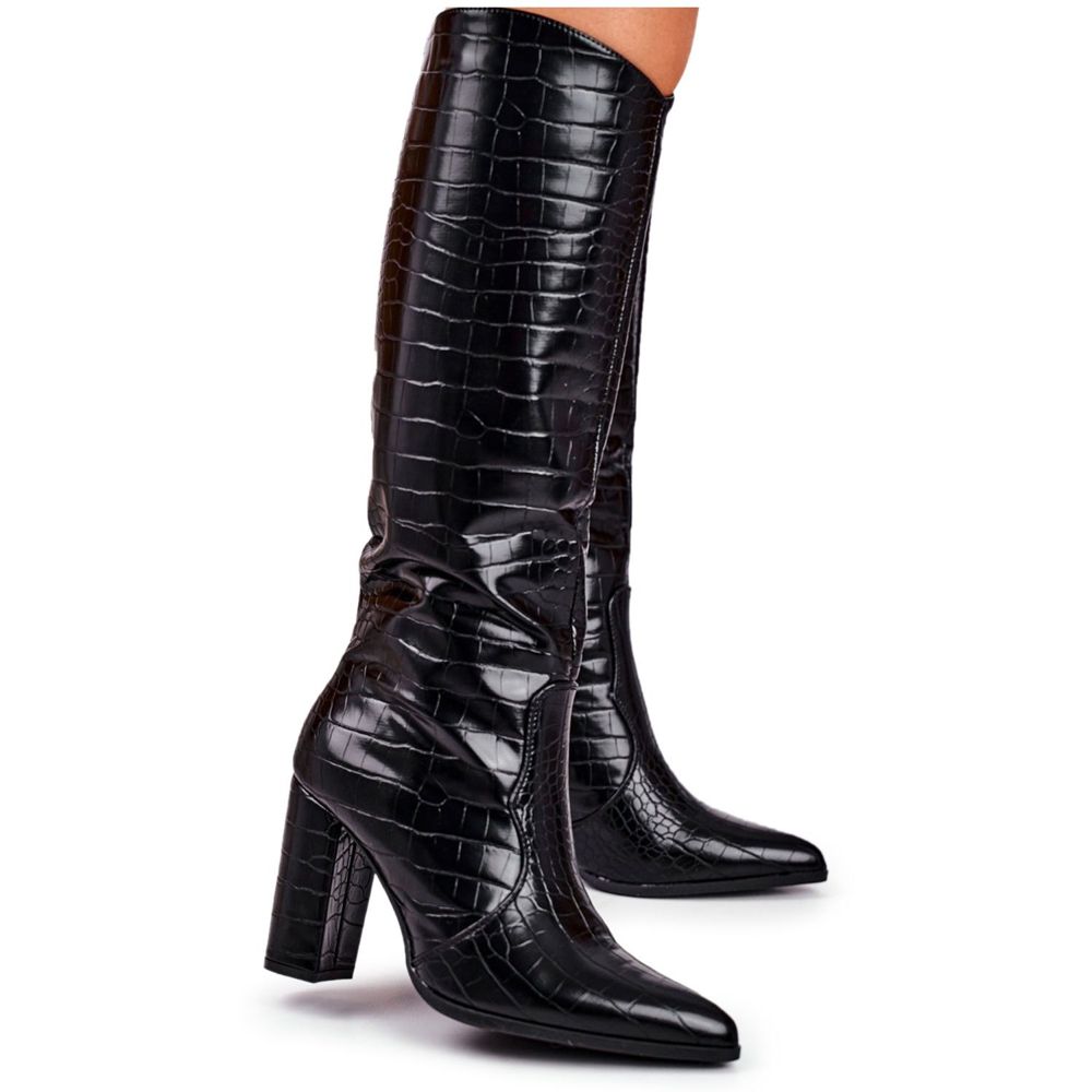 Vi presenterar de perfekta damstövlarna som kommer att glädja dig inte bara med sitt utseende, utan också med sin komfort att bära! Varmsvarta Ideal-stövlar är en perfekt lösning för kalla dagar. Tillverkade av ekologiskt läder med en elegant krokodilstruktur, kommer dessa stövlar perfekt att framhäva varje styling och lägga till chic och modernitet.