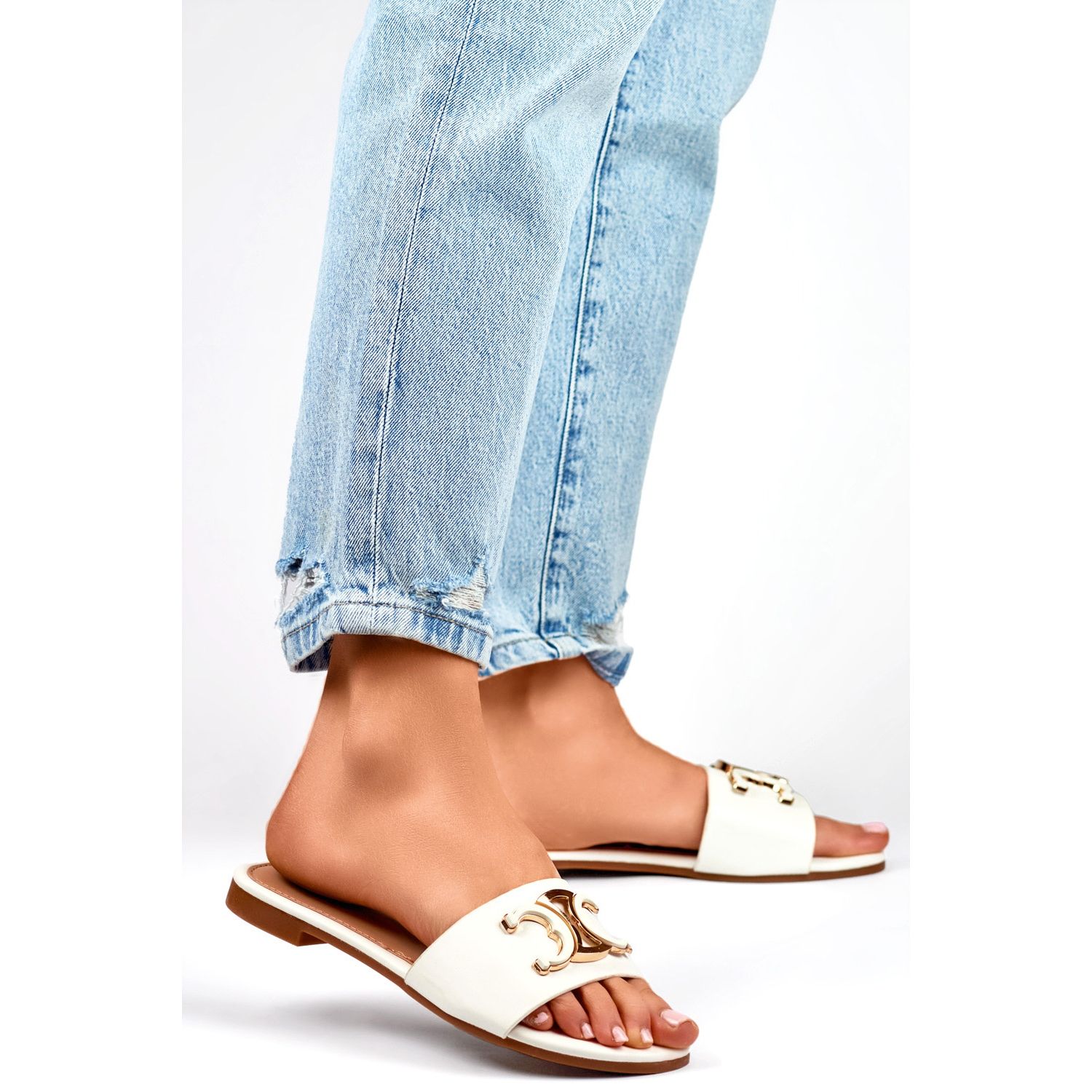 5174W kvinnors flip flops med en vit dekoration är det perfekta valet för varje fashionabla kvinna som vill kombinera komfort med elegans. Dessa flip flops är tillverkade av högkvalitativt ekologiskt läder och är inte bara estetiska utan också miljövänliga. Deras minimalistiska, vita färg gör att de är perfekt blandade med olika stiliseringar, från eleganta klänningar till avslappnade kombinationer med jeans eller sommarshorts.