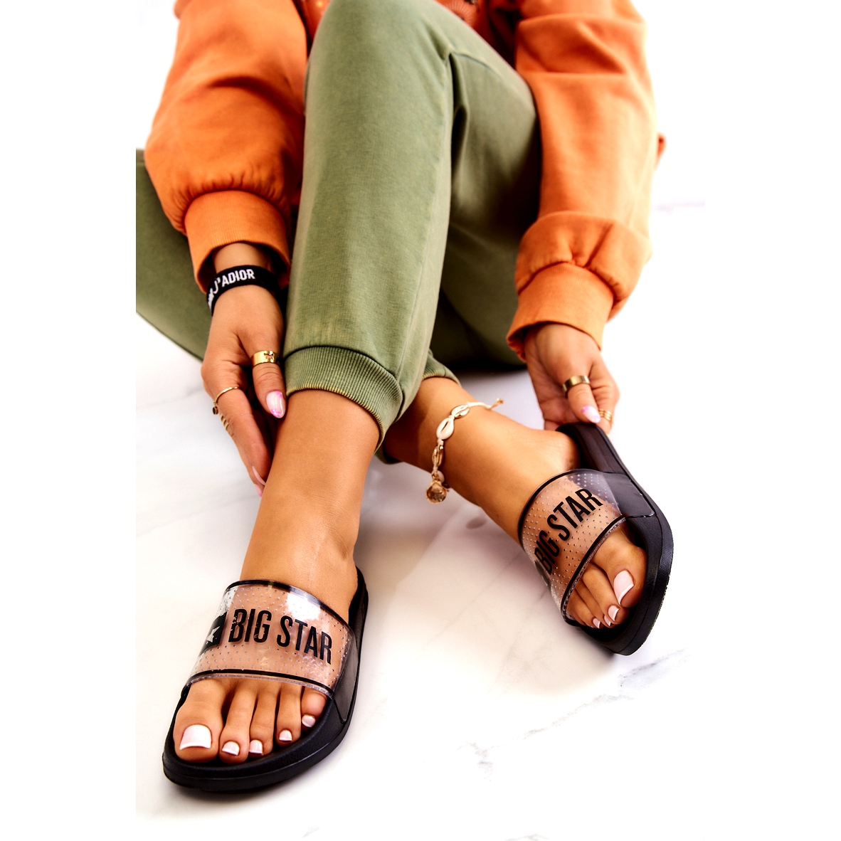 Big Star JJ274639 damflip-flops i svart är ett idealiskt alternativ för kvinnor som värdesätter komfort och moderiktig design. Tillverkade av högkvalitativt material och gummi, garanterar de lätthet och komfort att bära hela dagen. Transparenta ovandelar ger dessa flipflops en distinkt, modern look som fångar ögat.