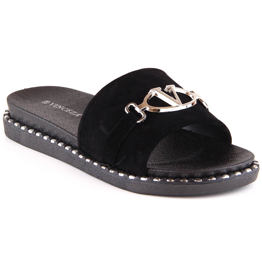 Vinceza Damtofflor i mocka med svart dekoration Vinceza 30183