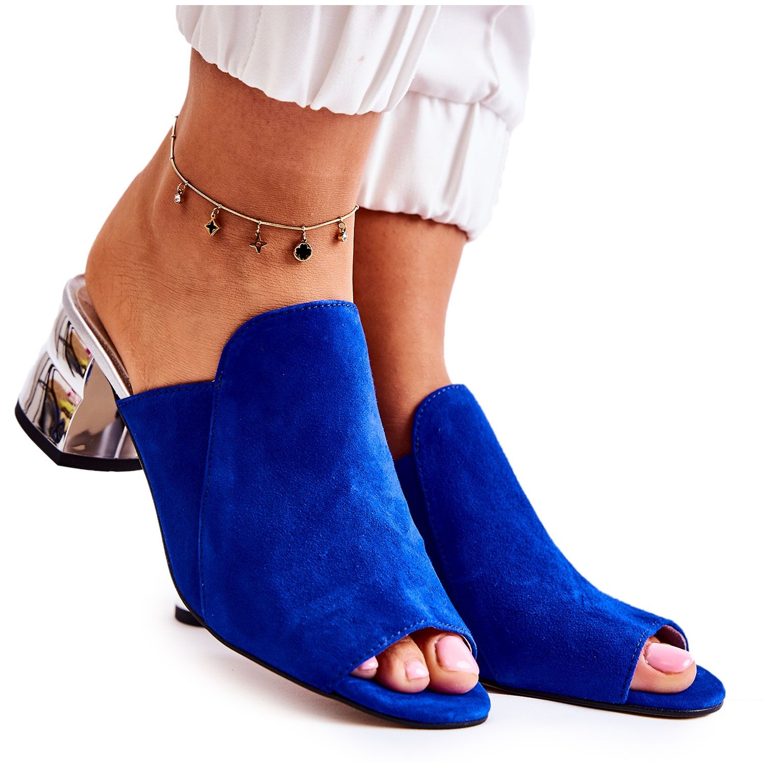 Detaljer: Damtofflor i mocka på klack Marinblå marinblå