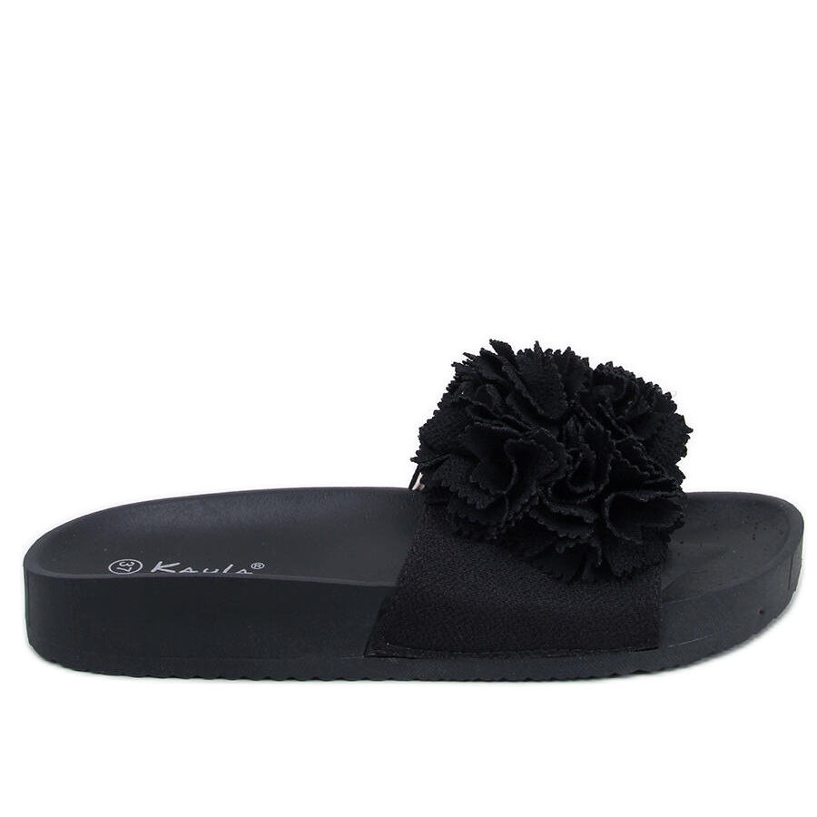 Detaljer: BM Damtofflor med blommor Traille Black svart