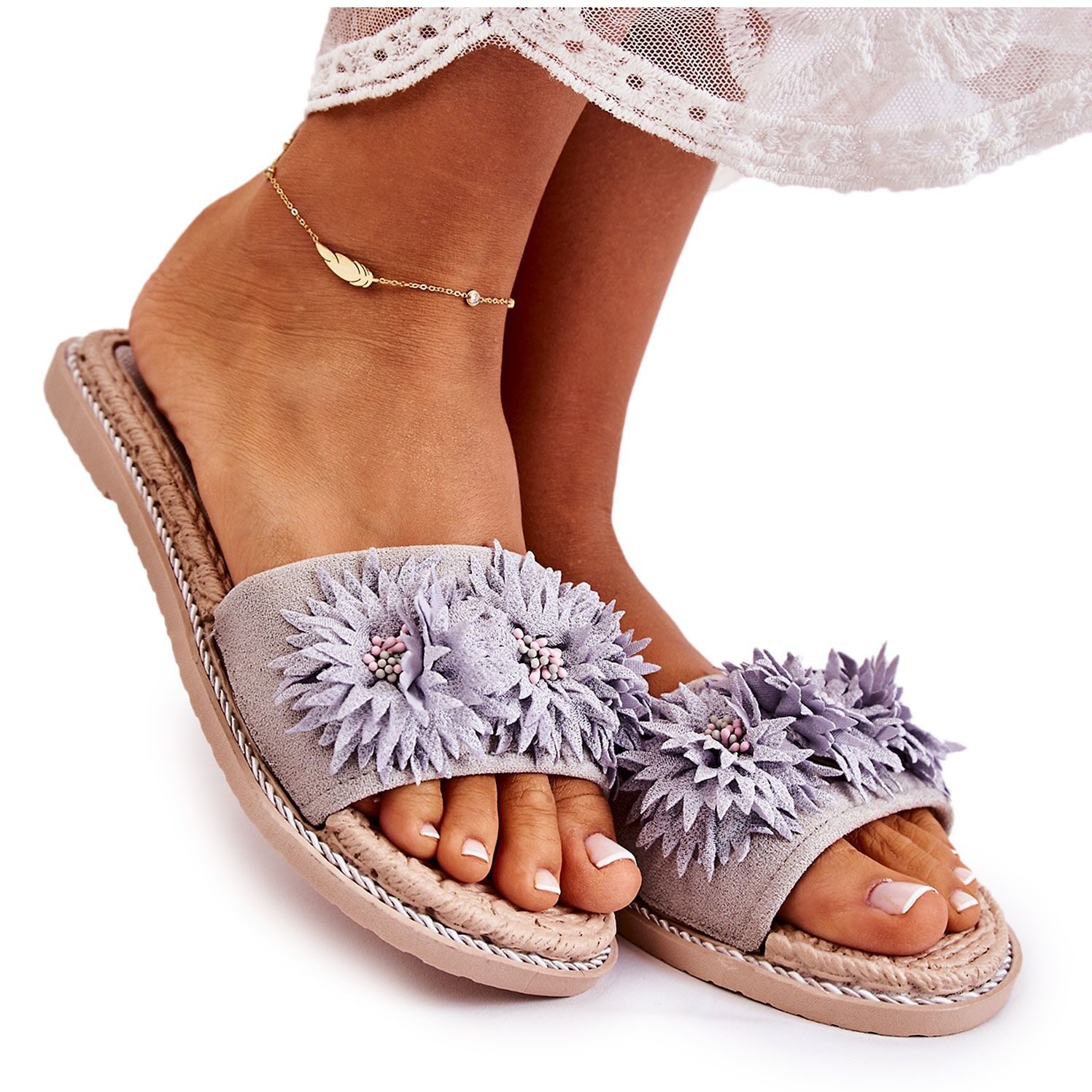 WJ1 WJ1 Damtofflor med tygblommor Grå Susana