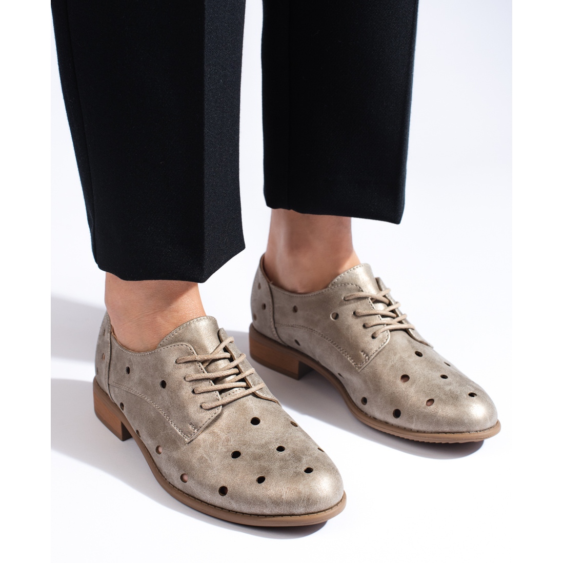 Vi presenterar kvinnors genombrutna Daszyński-skor i en elegant gyllene nyans, som kommer att lägga stil till varje vardaglig eller unik styling. Dessa unika skor, från den välkända tillverkaren DASZYŃSKI, kombinerar både modernitet och klassisk stil, vilket gör dem till ett idealiskt val för kvinnor som värdesätter komfort och estetik.