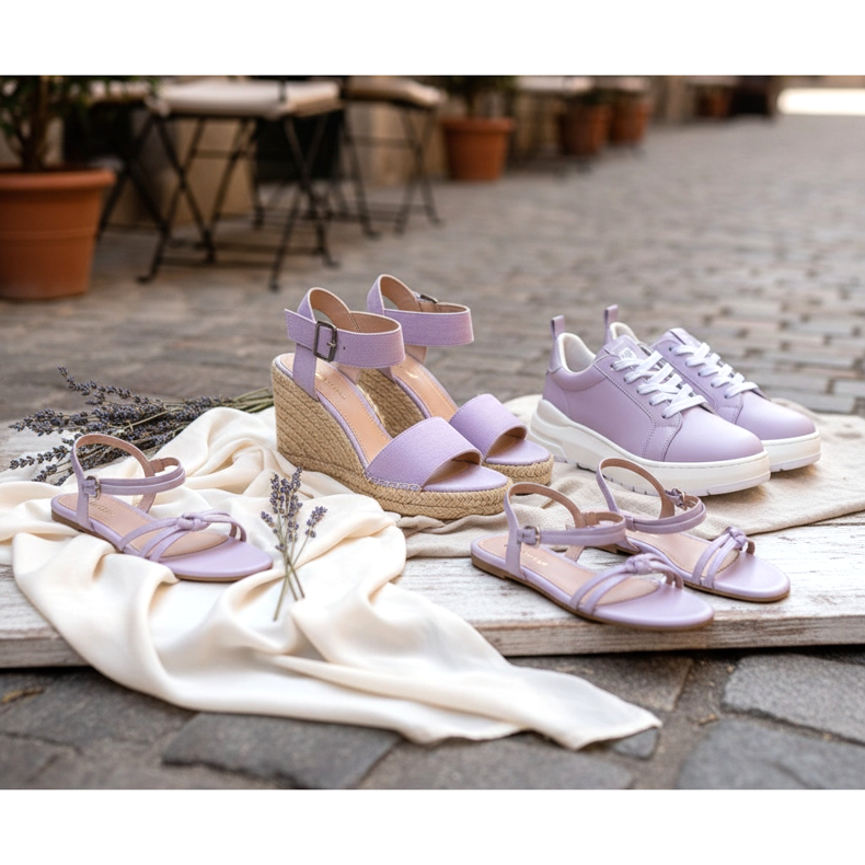 Lavendel och delikat lila är färger som efter en kort paus återvänder till catwalken med ny energi. Under säsongen vår/sommar 2026 framträder lila i skor i de ömtåligaste, pudriga varianterna - det är en romantisk, feminin och samtidigt överraskande universell färg.