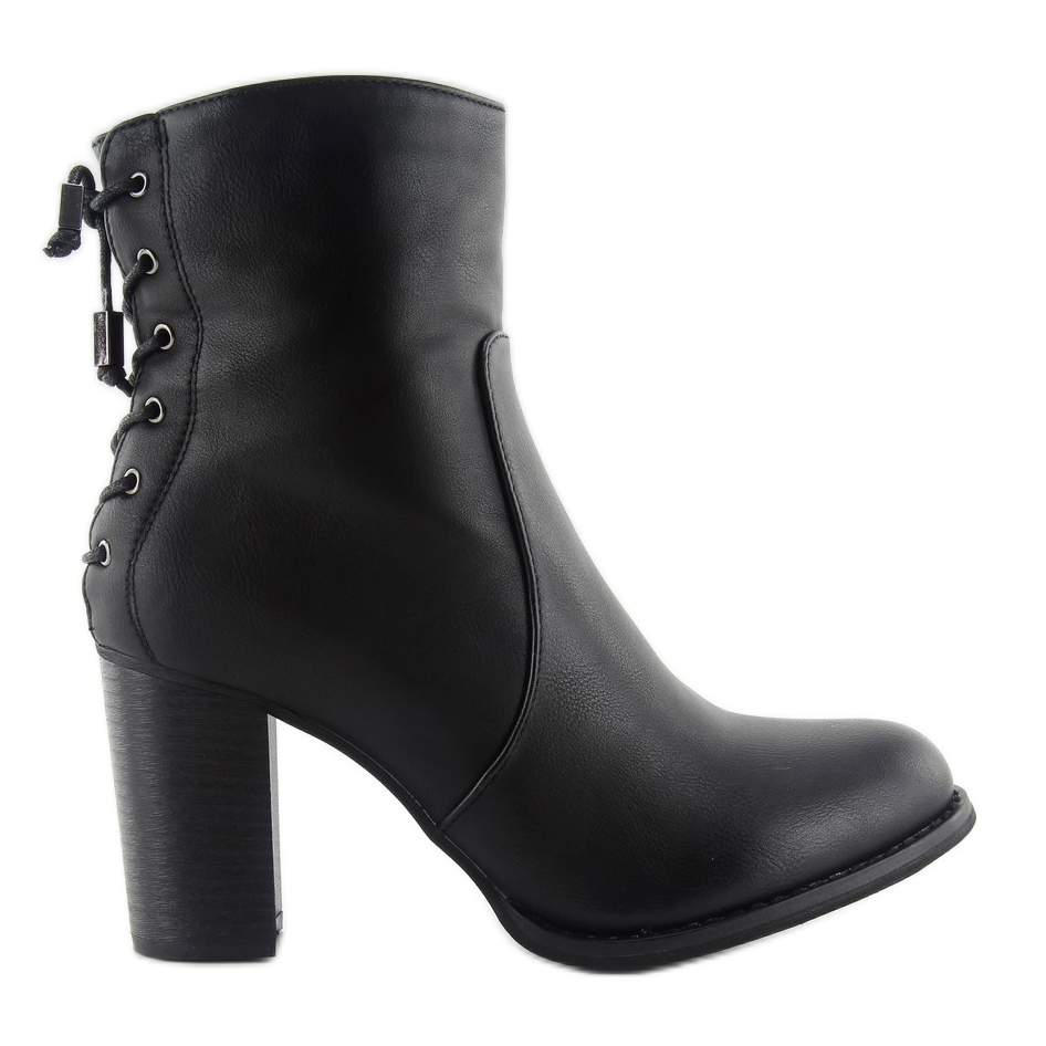 Dessa stövlar kännetecknas av en stabil, bred klack med en höjd på 8,5 cm, vilket garanterar bekvämt bärande hela dagen. Dessutom ger den subtila dekorativa snörningen på ovandelens baksida en unik karaktär, vilket ger lite extravagans. För att det ska vara enkelt att ta på sig är stövlarna utrustade med en praktisk dragkedja på insidan, vilket varje upptagen kvinna säkert kommer att uppskatta.