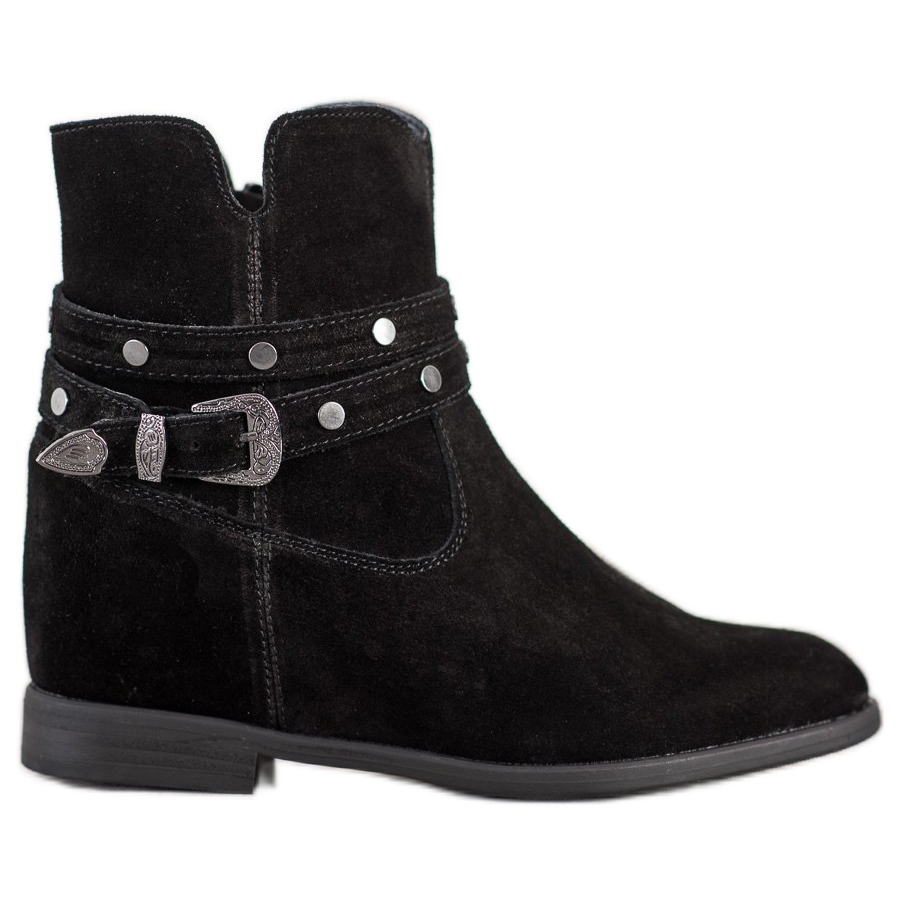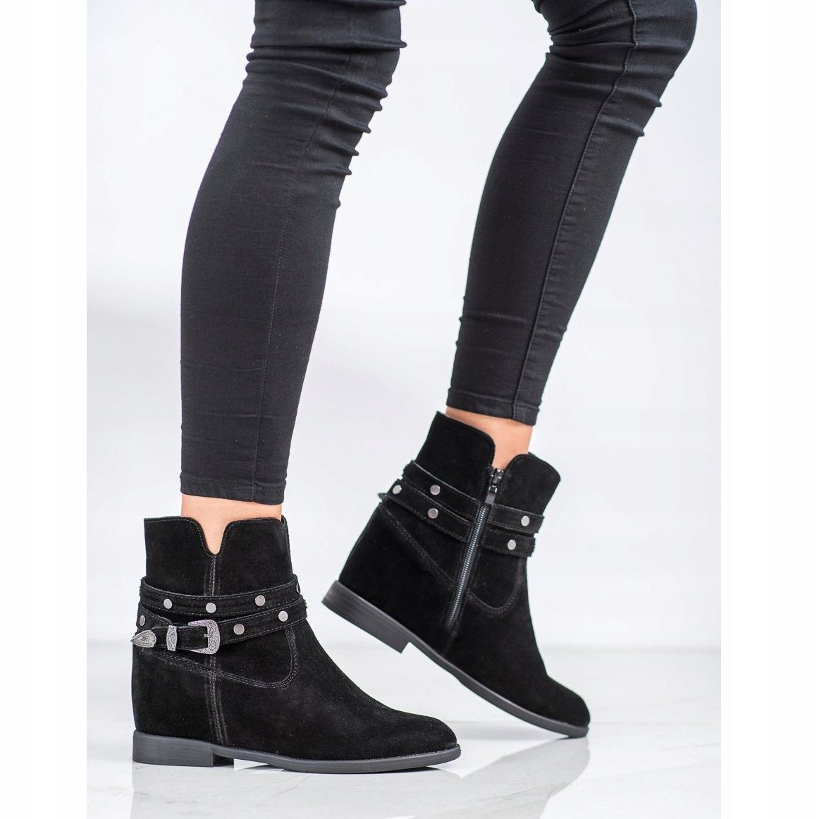 De ankelhöga stövlarna kännetecknas av en dold 8 cm hög kil, som framhäver den feminina siluetten och säkerställer komfort under gång. Den runda tån och den invändiga isoleringen gör dem till ett perfekt val för kallare dagar under höst-vintersäsongen. Interiören av textilmaterial garanterar komfort och tillräcklig ventilation av foten.