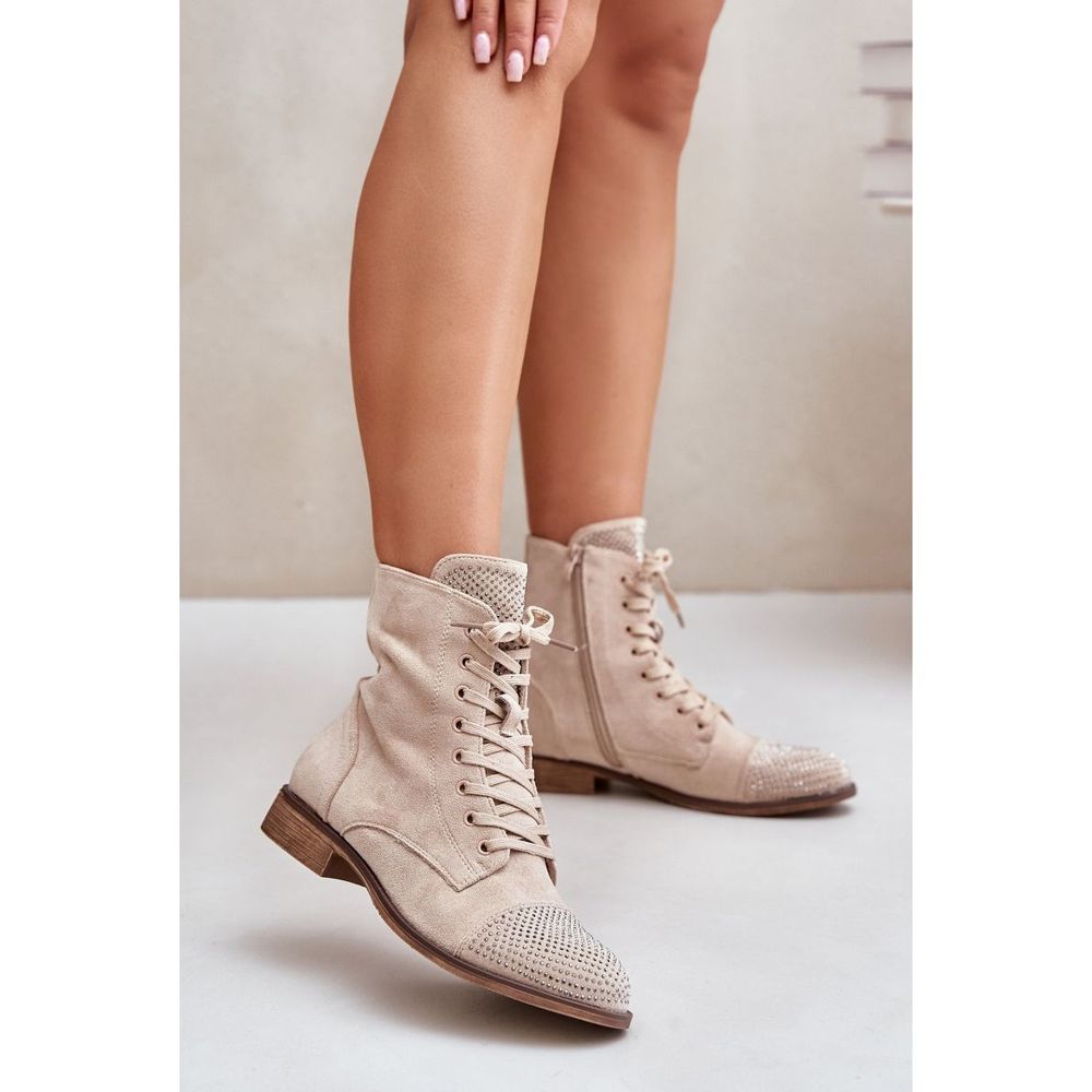 Inna marka Dekorerade stövlar med platt klack, ekomocka, varm, ljusbeige Ellieo