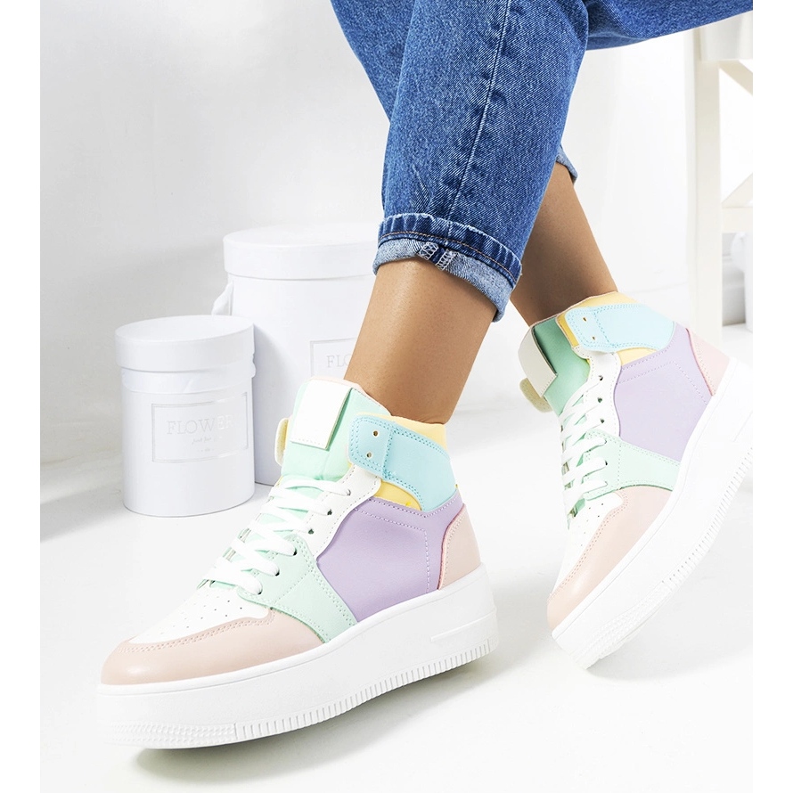 Klassisk och samtidigt avant -garde - dessa lila sneakers vid vristen lockar utseende från första ögonblicket. Den höga, vita sulan och den förhöjda plattformen (4,5 cm) lägger till en sportig karaktär och har optiskt smal figuren. En ekologisk läderöverdel i en pastellskugga av lila går bra med sommar- och stadsstyliseringar.