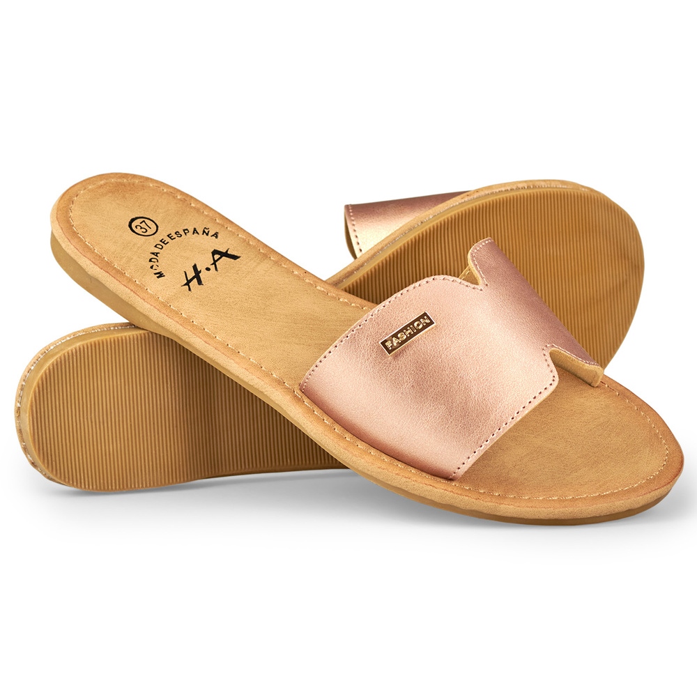 Information: Denly klassiska platta tofflor för kvinnor gyllene