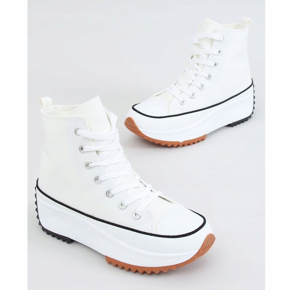 Den klassiska designen på dessa snörskor fräschas upp med en hög designersula, upp till 4,5 cm hög. Det är detta element som gör att vita dukar sticker ut från mängden och blir ett idealiskt val för dem som gillar extravaganta lösningar. Skor i ren vit färg är universella och matchar praktiskt taget alla kläder - från jeans till klänningar.