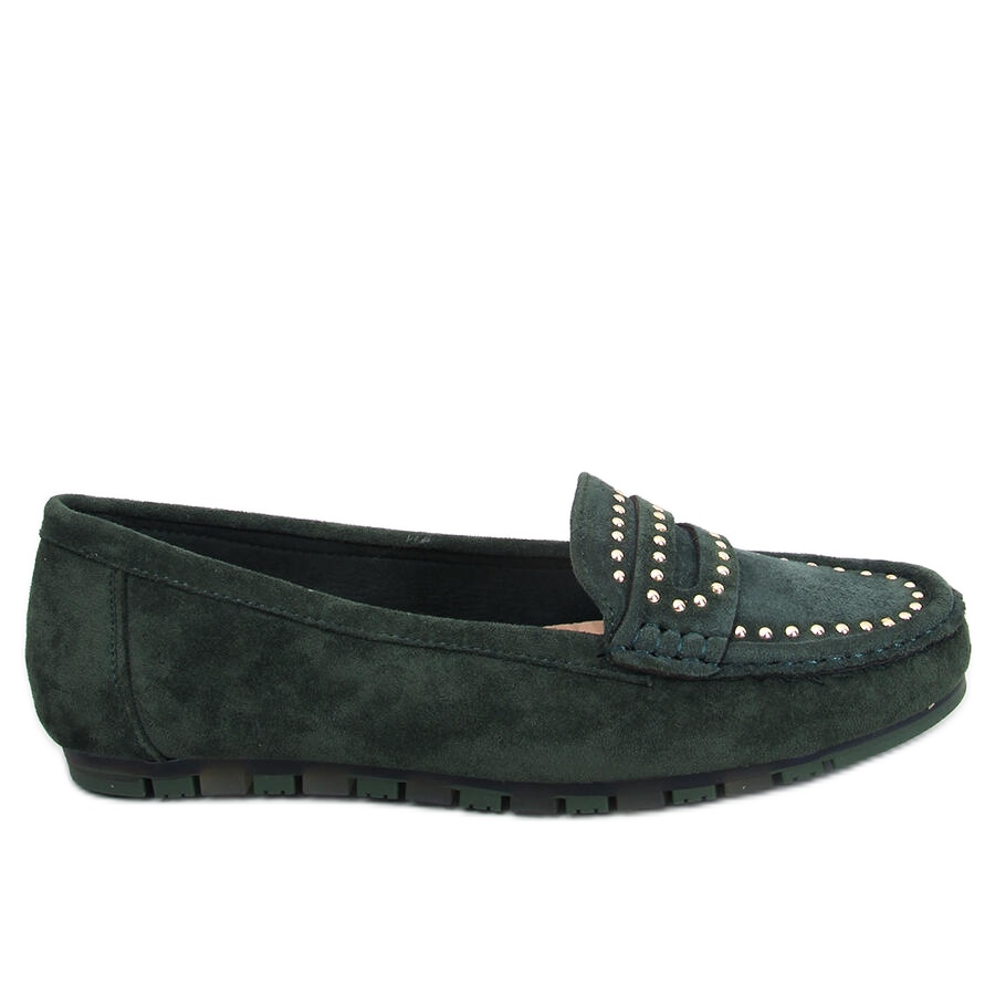 Eleganta och bekväma Loafers Deys Green är ett vardagligt erbjudande för kvinnor som värderar ett klassiskt snitt med en fashionabla accent. Tillverkad av ekologisk mocka, dekorerad med subtila dubbar och strass som skapar ett unikt mönster, kommer de perfekt att komplettera både avslappnade och mer eleganta stiliseringar.