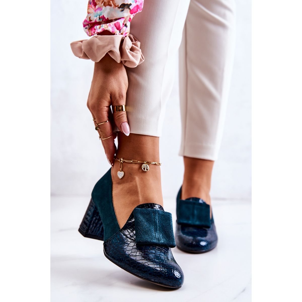 Dianas sensuella pumpar är en kombination av en klassiker med en modern accent - gjord av naturläder i mocka finish med ett effektivt mönster av "orm" -hud. Den subtila bågen på framsidan lägger till en feminin stil, och den runda näsan och en stabil stolpe med en höjd av 6 cm garanterar komfort och ett visst steg under dagen.