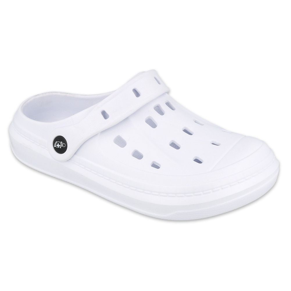 Bekväma flip -flops från Dr. Orto Med -linjen från Befado - skapad för personer som arbetar inom medicinska tjänster och i alla yrken som kräver långvarig. Det klassiska, enkla snittet i Universal White kommer att fungera i arbetsförhållanden som kräver hygien och enkel rengöring.