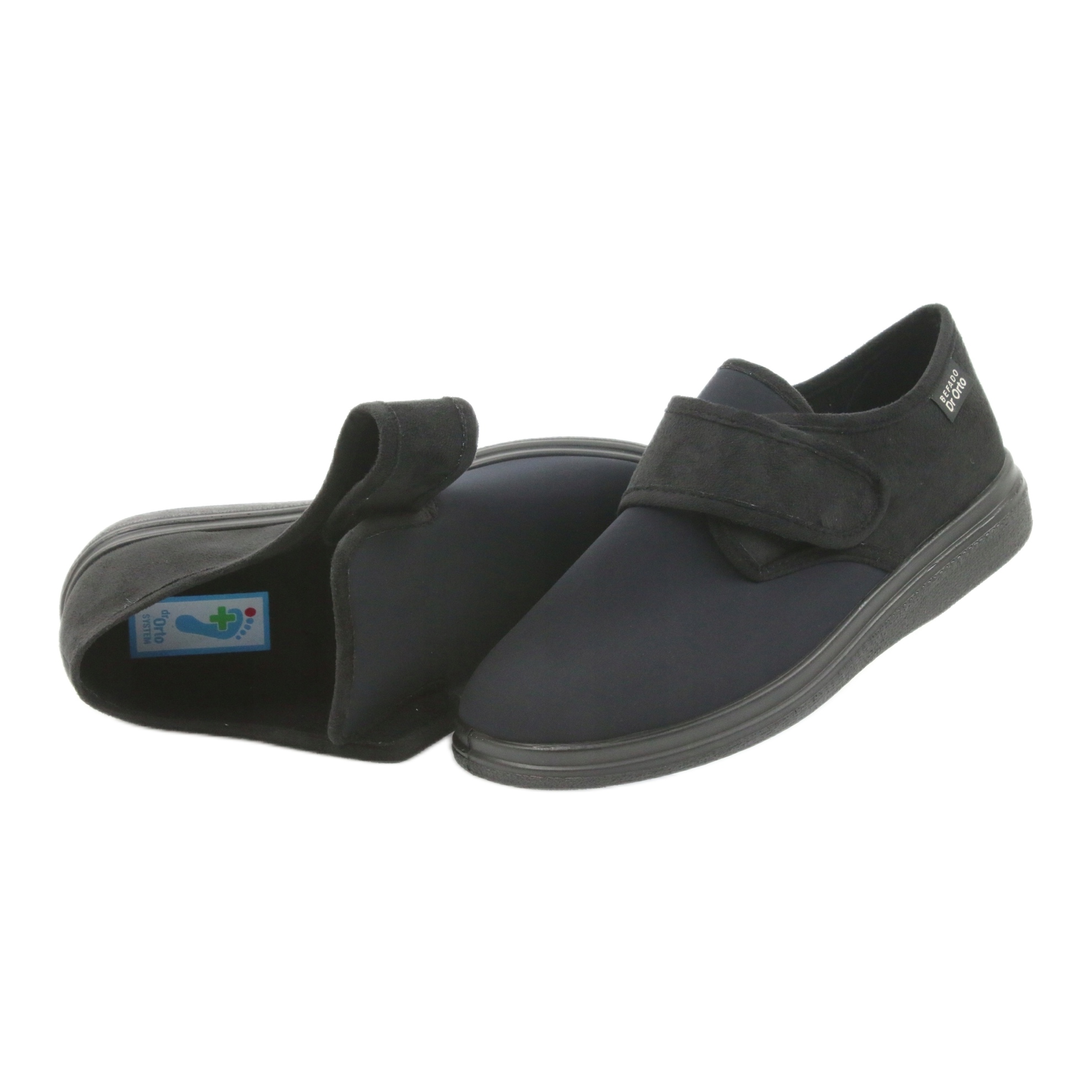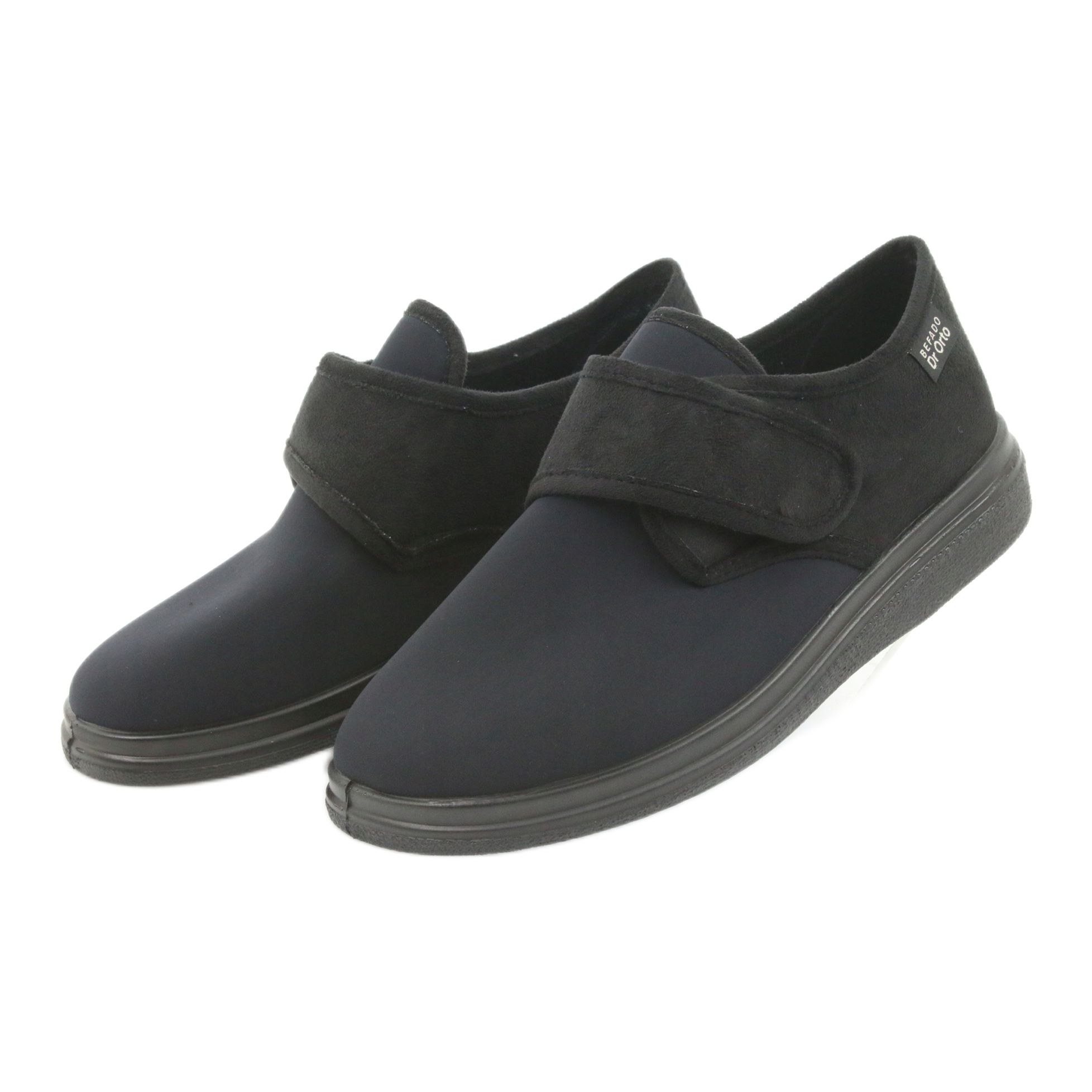 Bekväma hemtofflor av det polska märket Befado från Dr.Orto-linjen, modell 036D006, designade för maximal komfort och fotskydd. Perfekt att bära hemma, de är också perfekta för korta resor utomhus.