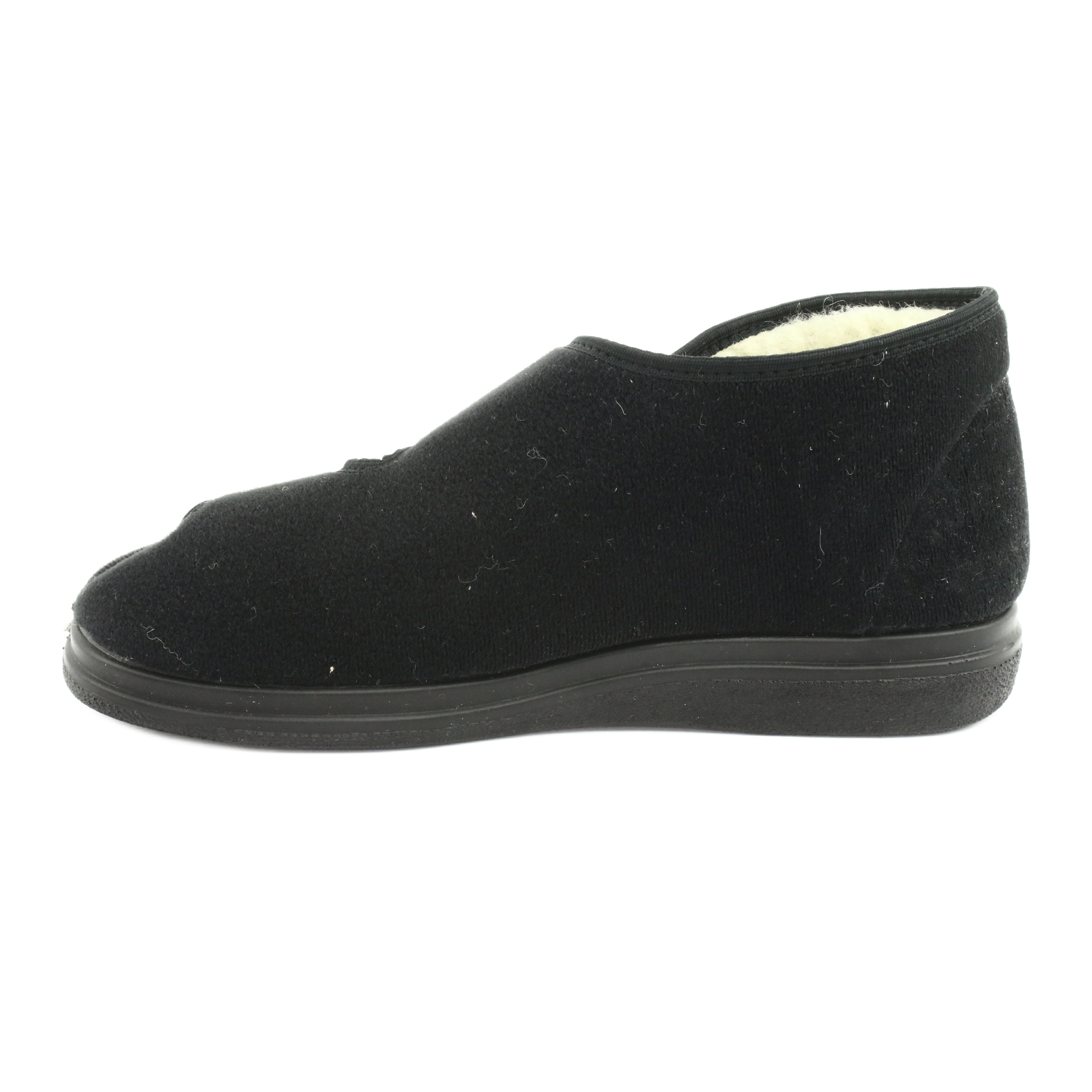 Eleganta och funktionella mäns tofflor Dr.orto Befado 986M011 är en kombination av hållbarhet, komfort och klassiskt utseende. Det yttre materialet gjord av velor och en värmande insats av naturlig ull säkerställer trevlig värme och mjukhet, tack vare vilken tofflorna är perfekta för svalare dagar. Svart färg och noggrann finish ger dem en universell, snygg karaktär.