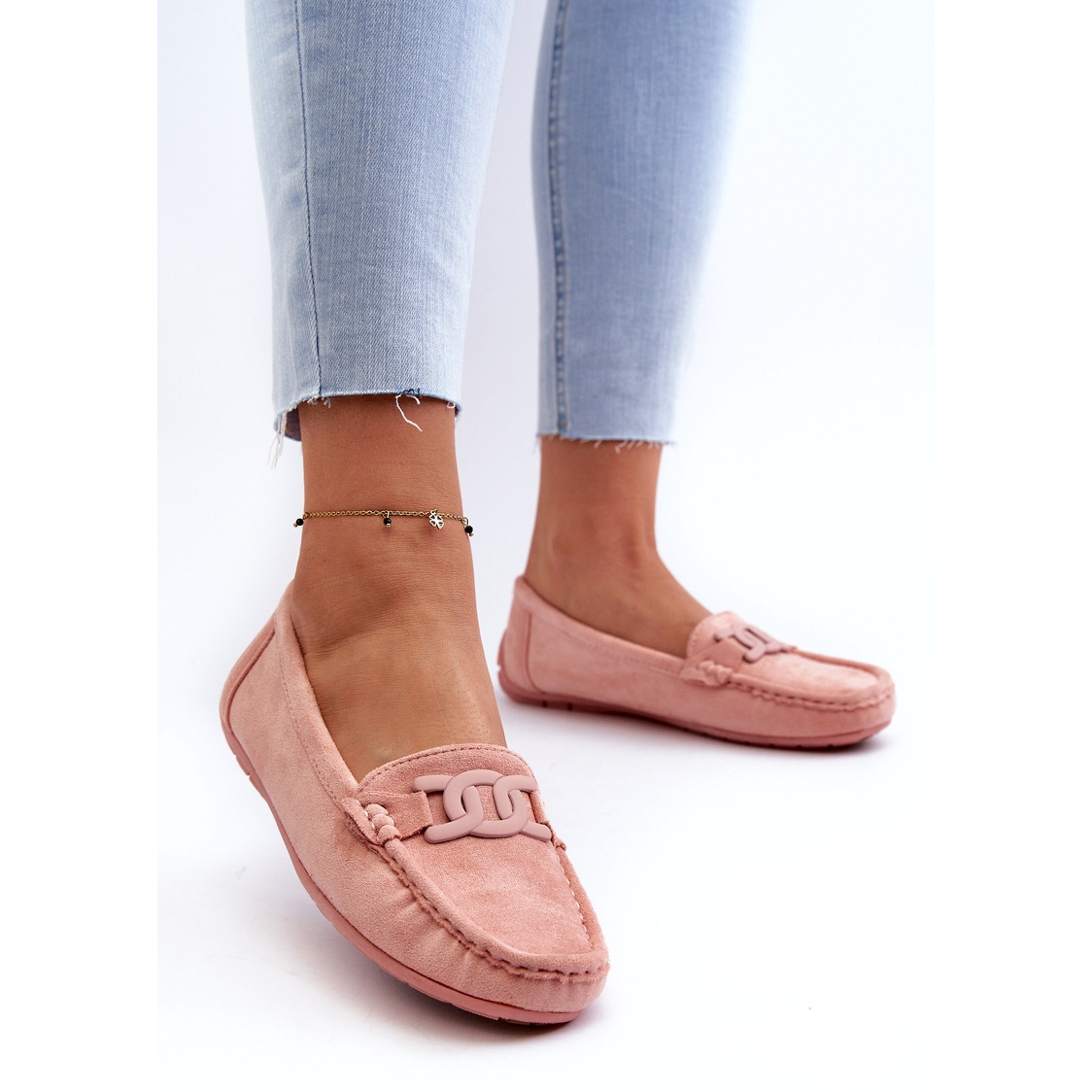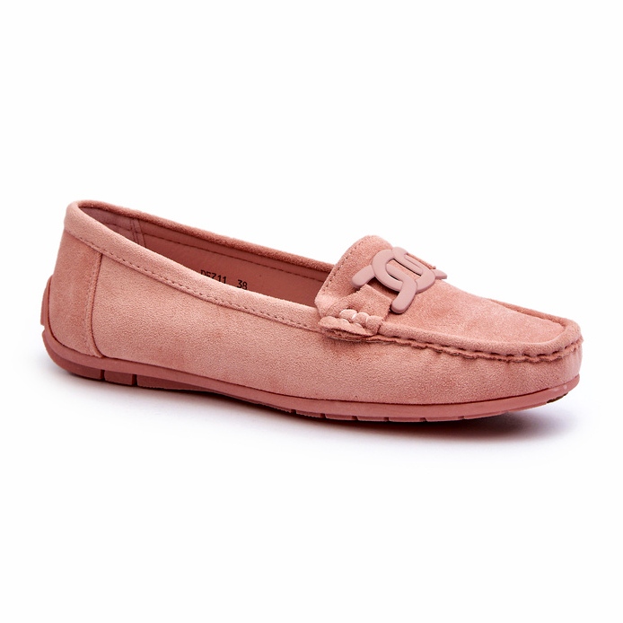 Upptäck charmen och bekvämligheten med ljusrosa eko-del kvinnors mockasiner, som är ett idealiskt tillskott till varje kvinnlig stilisering! De är gjorda av högkvalitativa Eco Suede och kännetecknas av mjukhet och nöje att bära. På framsidan av skorna finns en elegant dekoration i form av en plastkedja, vilket ger dem en unik karaktär.
