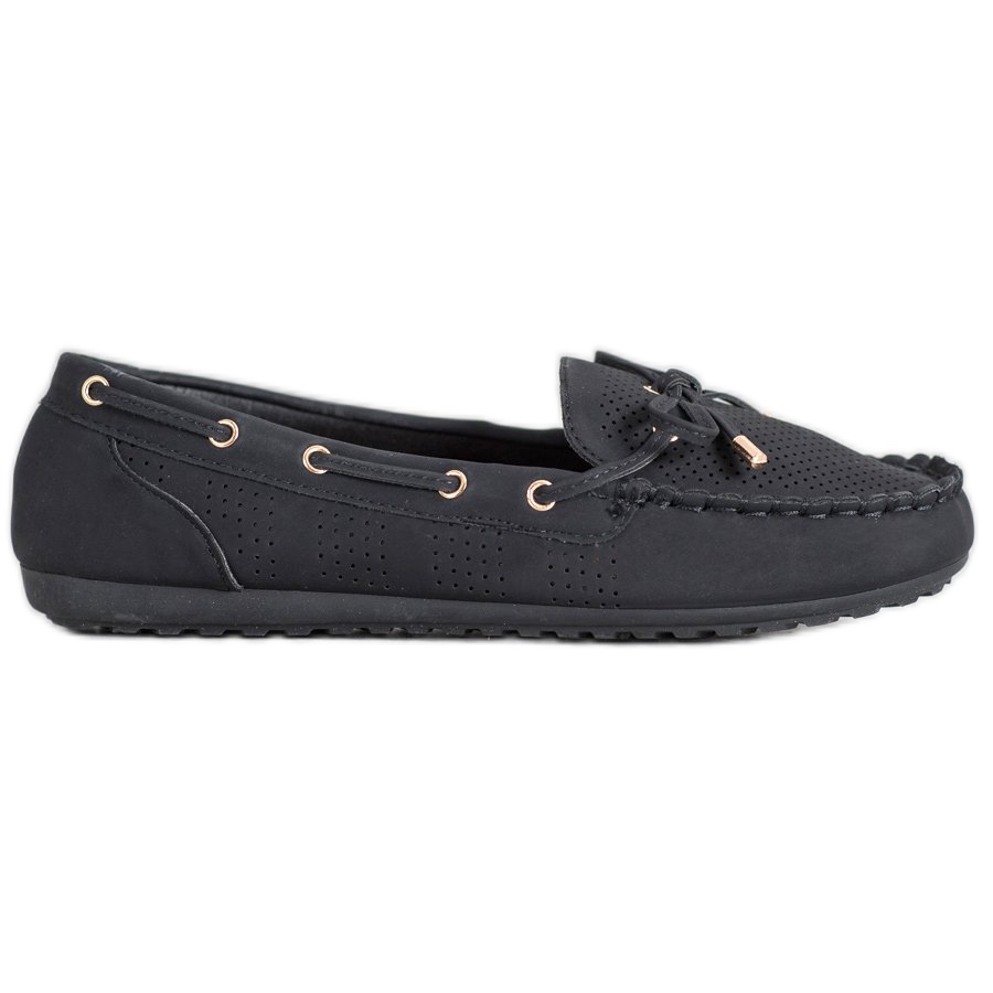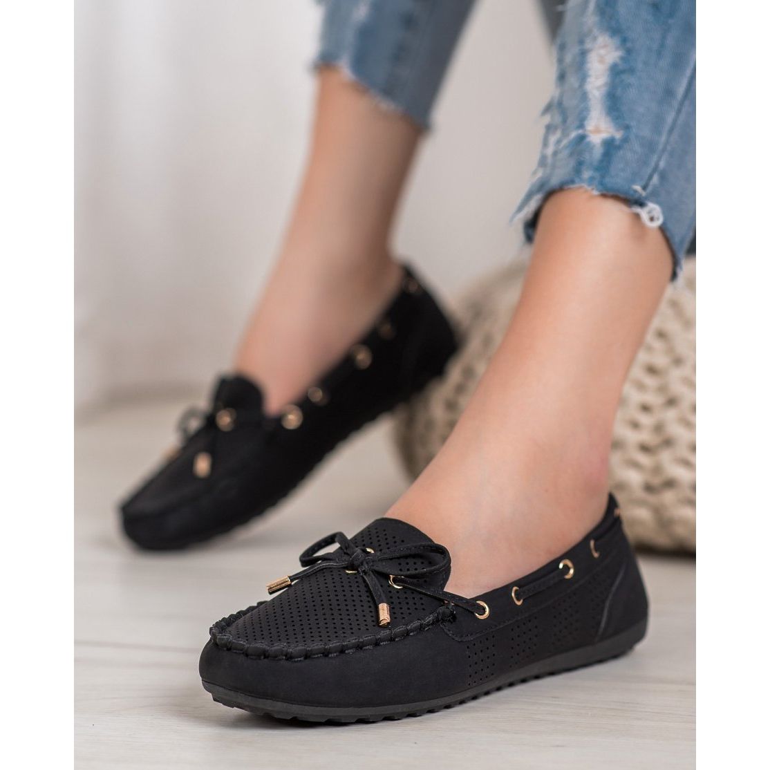 Denna modell kännetecknas av en inbyggd, mjuk häl, som säkerställer komforten att bära, och den runda tån ger elegans. Plastsulan är slät vilket gör det lättare att gå på olika underlag. Den låga klackhöjden på 1 cm gör mockasinerna mycket bekväma och lätta att köpa för alla tillfällen.