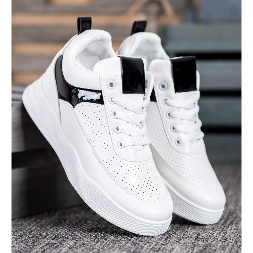 Renda sneakers gjorda av ekologiskt läder i vitt är ett måste i varje kvinnas garderob. Dessa snygga och moderna skor kombinerar moderiktig design och utmärkt bärkomfort, vilket gör dem perfekta för både vardagsbruk och speciella tillfällen. Utmärkta av en iögonfallande svart, glänsande rand, drar sneakers till sig uppmärksamhet och ger en unik karaktär till varje styling.